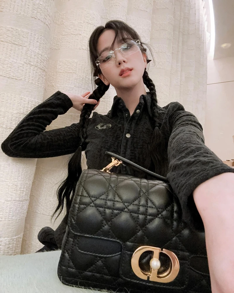 Blackpink Jisoo近日前往巴黎參加Dior大秀的同時,就以雙辮+蝴蝶結的學院造型出席秀場,私下在IG上更加碼分享了在巴黎的美照,照片中Jisoo就戴上了無框眼鏡,銀色鏡架的設計是亮眼細節,搭配上黑色襯衫領上衣與鑲有珍珠鈕扣的Dior手袋合照,就是高顏質學霸代表!