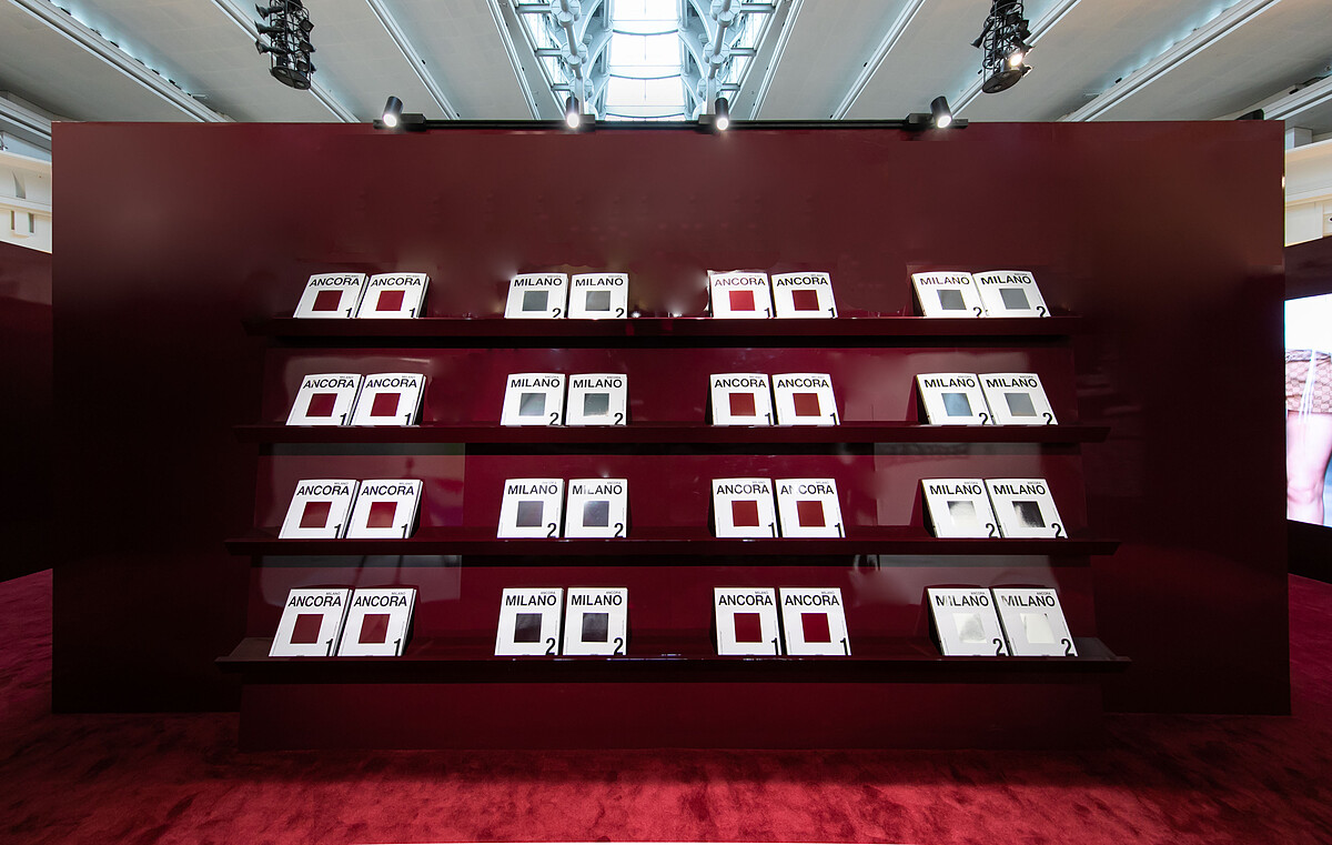 來到現場參觀,可以親手在雜誌牆翻閱,書中可以看見許多由Sabato De Sarno 揀選的藝術作品,文學、音樂、電影、時尚以及歷史相互交匯,敘述這座城市—米蘭,從戰後時期綿延至今的文化與藝術史片段。