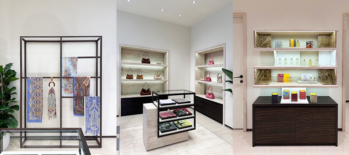設立在「SOGO復興形象店」的ETRO台北全新形象店,承襲米蘭總店的規劃風格,以暖色調及光影藝術作為主調DNA,在彰顯ETRO一貫奢華質感的精緻氛圍之餘,同時也在空間中營造出簡約大氣的當代摩登美學,在雅緻繁複細節與俐落寬敞空間的交織之下,使得造訪的時尚品味人士更能感受到品牌一如以往所堅持的匠心工藝,以及傳遞永恆奢華經典的品味主張。