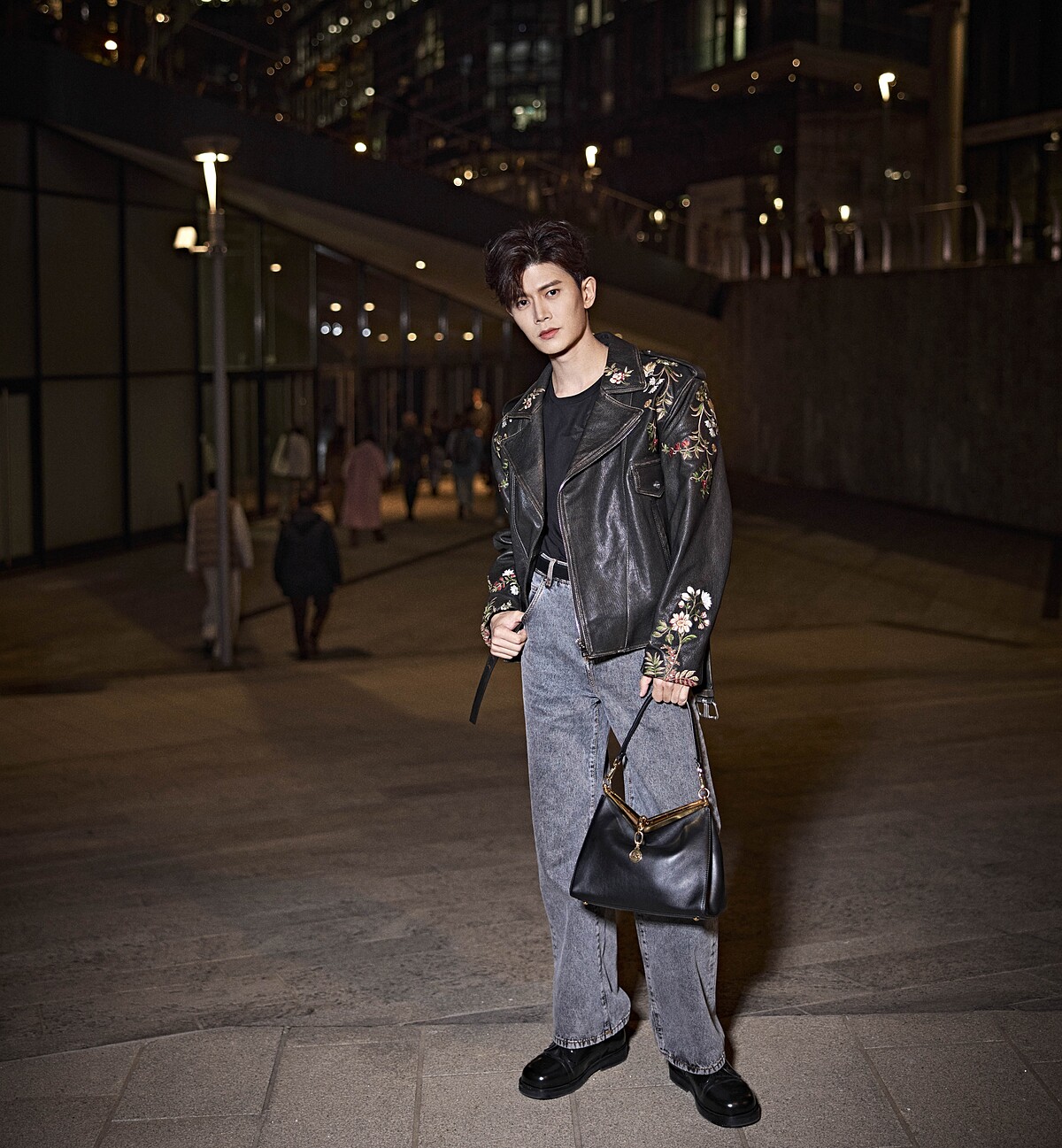 知名演員任嘉倫最近也以刺繡機車皮革外套搭配黑色Vela Bag的造型大大出圈,搭配上巧妙運用了相同材質與色系的呼應細節,碰撞出率性格調,也彰顯了這款風靡全球的 I.T BAG在形塑不受性別與各種混搭創意巧思的強大時尚表現力。