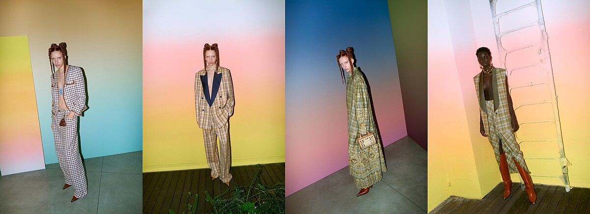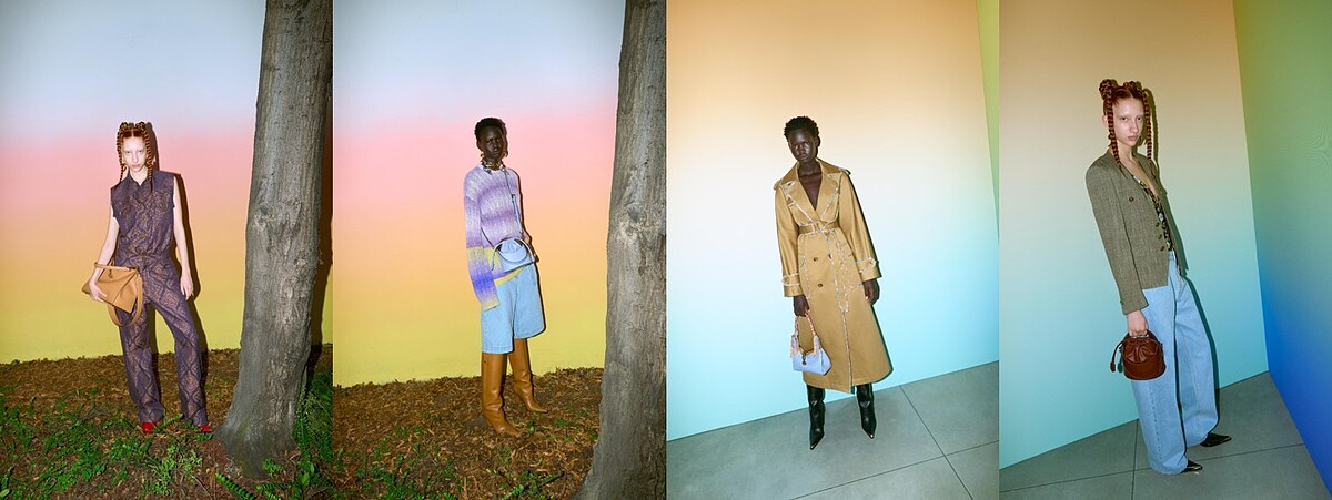 2024度假系列淡化了色澤的鮮豔度,保留品牌獨有浪漫圖騰印花的同時,以俐落摩登的剪裁單品來達到和諧之美,無論是渲染布料與寬鬆牛仔褲的組合;印花圖案成為風衣外套裝飾花邊;格紋圖騰融入在西裝與洋裝單品中營造多變意境…等對比碰撞,綴以個性鞋履與風格包款,呈現帥與柔、繁與簡的出色格調。