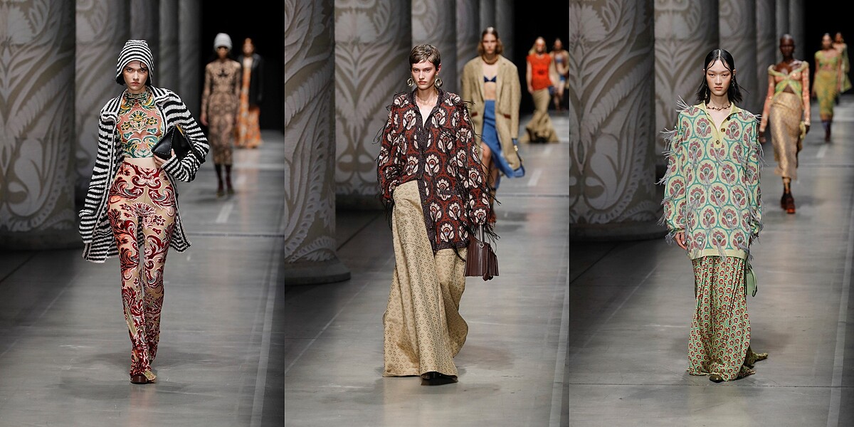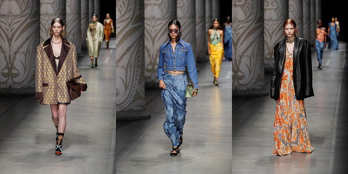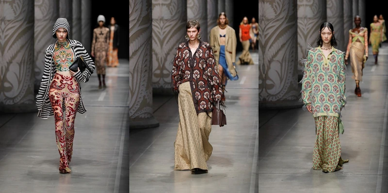 一年前就任ETRO設計總監的Marco De Vincenzo,透過自身創意將品牌將簡約極簡的當代趨勢,將ETRO固有的波西米亞風格、花卉圖案、異國飄逸…的華麗繁複姿態,形塑出平衡和諧的全新樣貌,這些令人驚豔的轉變都皆能在從2024度假&春夏系列中感知。