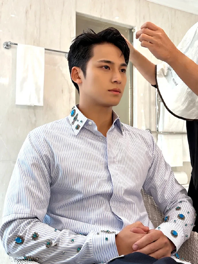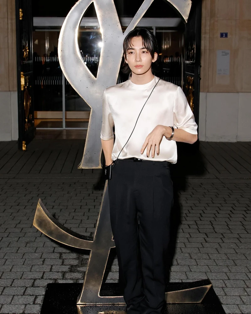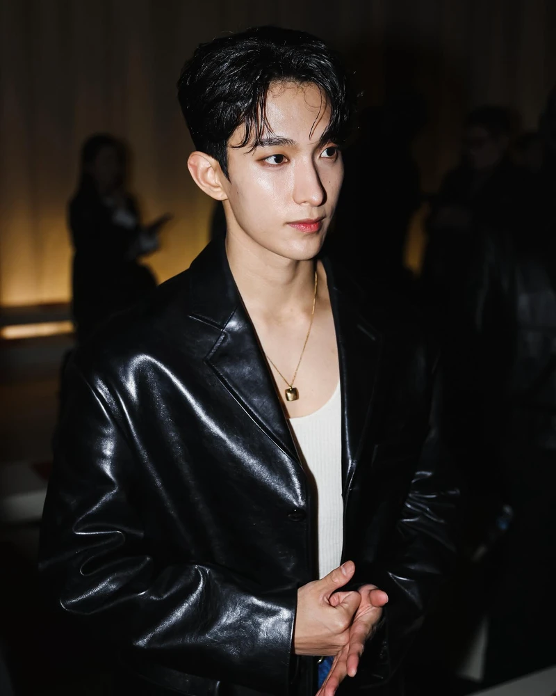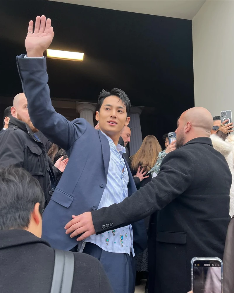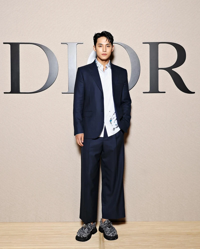 在Dior的時裝秀上為大家貢獻男版咬筆蓋經畫面的大狗狗珉奎,被稱作是來時裝週最歡樂的韓星,進場前粉絲的推擠畫面,搭配珉奎的歡樂表情,直接變成網路迷因影片瘋傳,除了貢獻表情標之愛,穿上深藍西裝與淺藍襯衫的珉奎,可愛又帥氣。