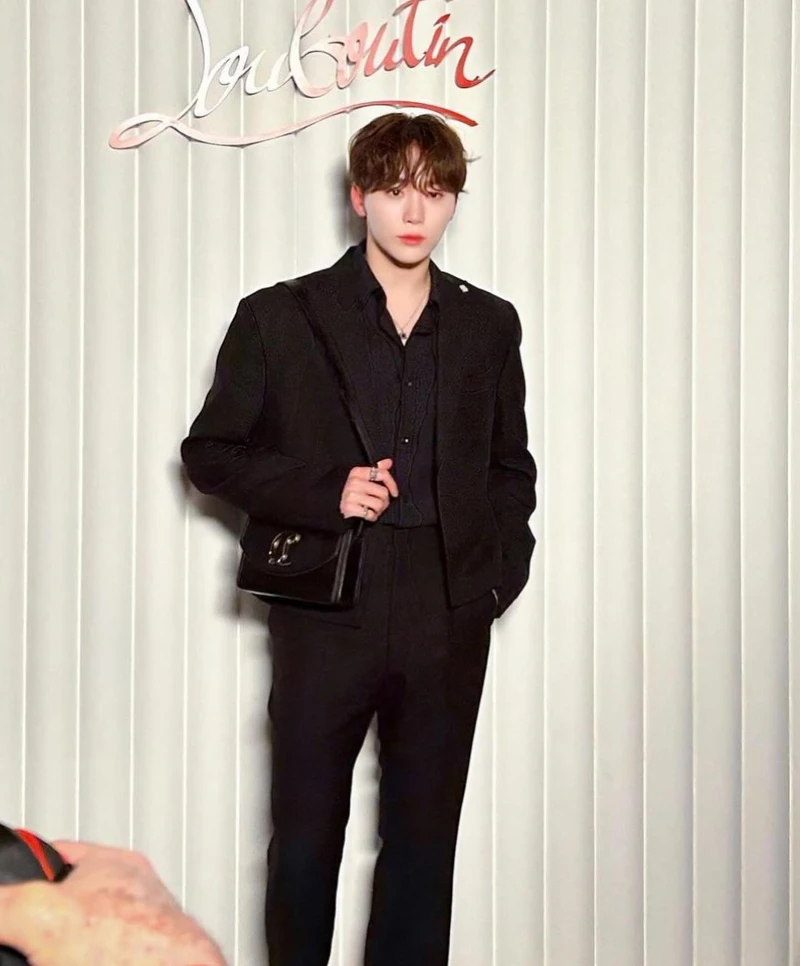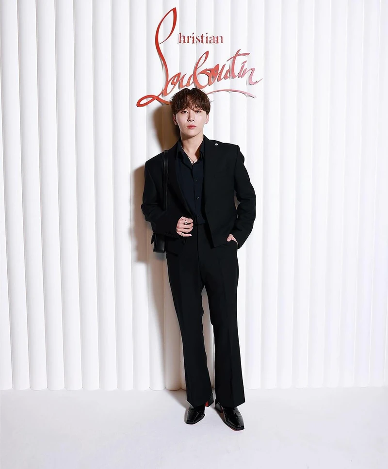 勝寬身穿一身黑色西裝帥氣俐落,搭配Christian Louboutin的紅底皮鞋與背包,平時很有綜藝感的勝寬,高冷起來也是魅力十足。