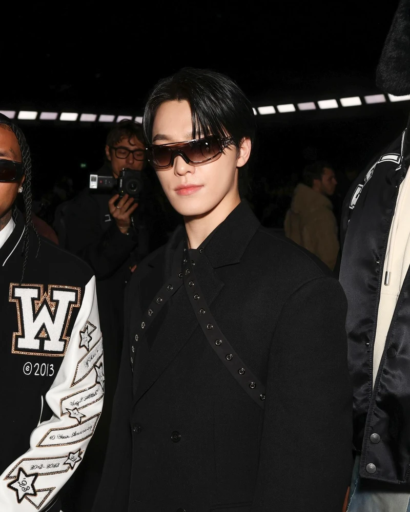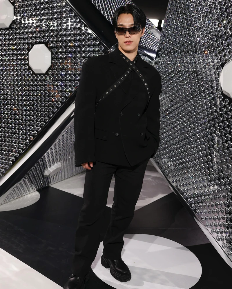作為SEVENTEEN的忙內,Dino這次出席Off-White以酷帥的未來感穿搭登場,黑色套裝配上銀色扣洞的背帶,簡直酷勁十足!