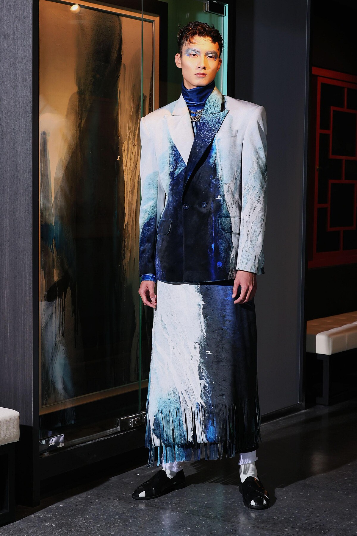 此次的跨界大秀同樣讓人好奇設計師周裕穎的靈感來源,設計師從跨越國際並保留在地精神為本,以時裝工藝融合史博館的多樣藏品,像是《萬曆青花雙龍暖壽罈》、《青花一束蓮大盤》、《三彩加藍人面鎮墓獸》到近現代的作品馬白水《太魯閣之美》、席德進《賣鵝者》等台灣藝術史重要之作都成為靈感。
