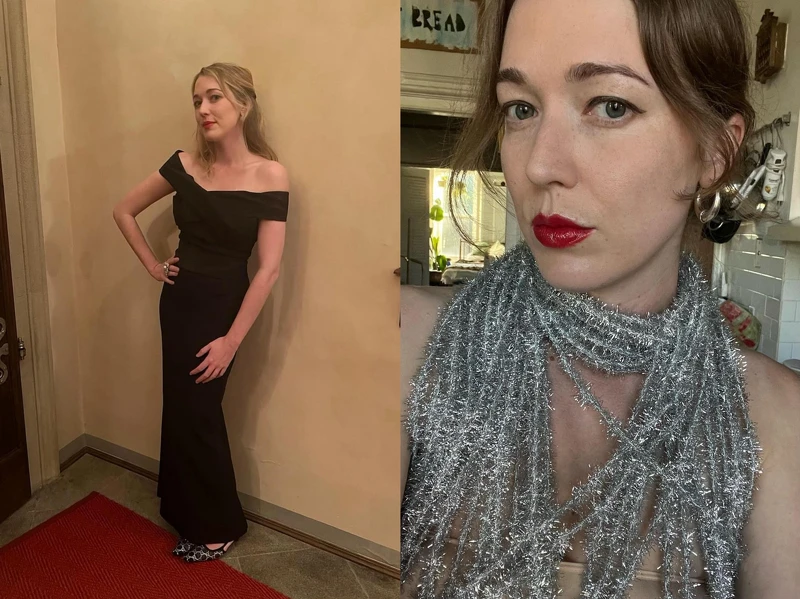 可以看到,Angelica Hicks的模仿對象從Zendaya、Ariana Grande、Dua Lipa、Hunter Schafer⋯⋯當紅明星一個不放過,通通成為她的題材。T恤、床單剪一剪套上就變成大禮服,絕緣膠帶拿來做鞋子,吃完的零食包裝紙還可以當作珠寶⋯⋯不得不說,遠看確實還挺以假亂真的!她甚至將她模仿奧斯卡紅毯的一系列造型搬上《Good Morning America》節目,獲得許多觀眾的喜愛。
