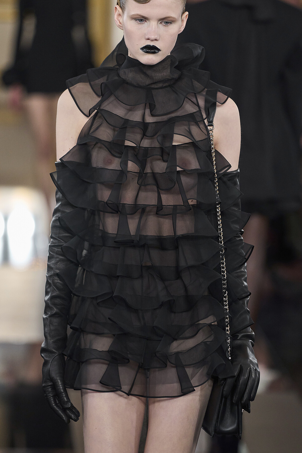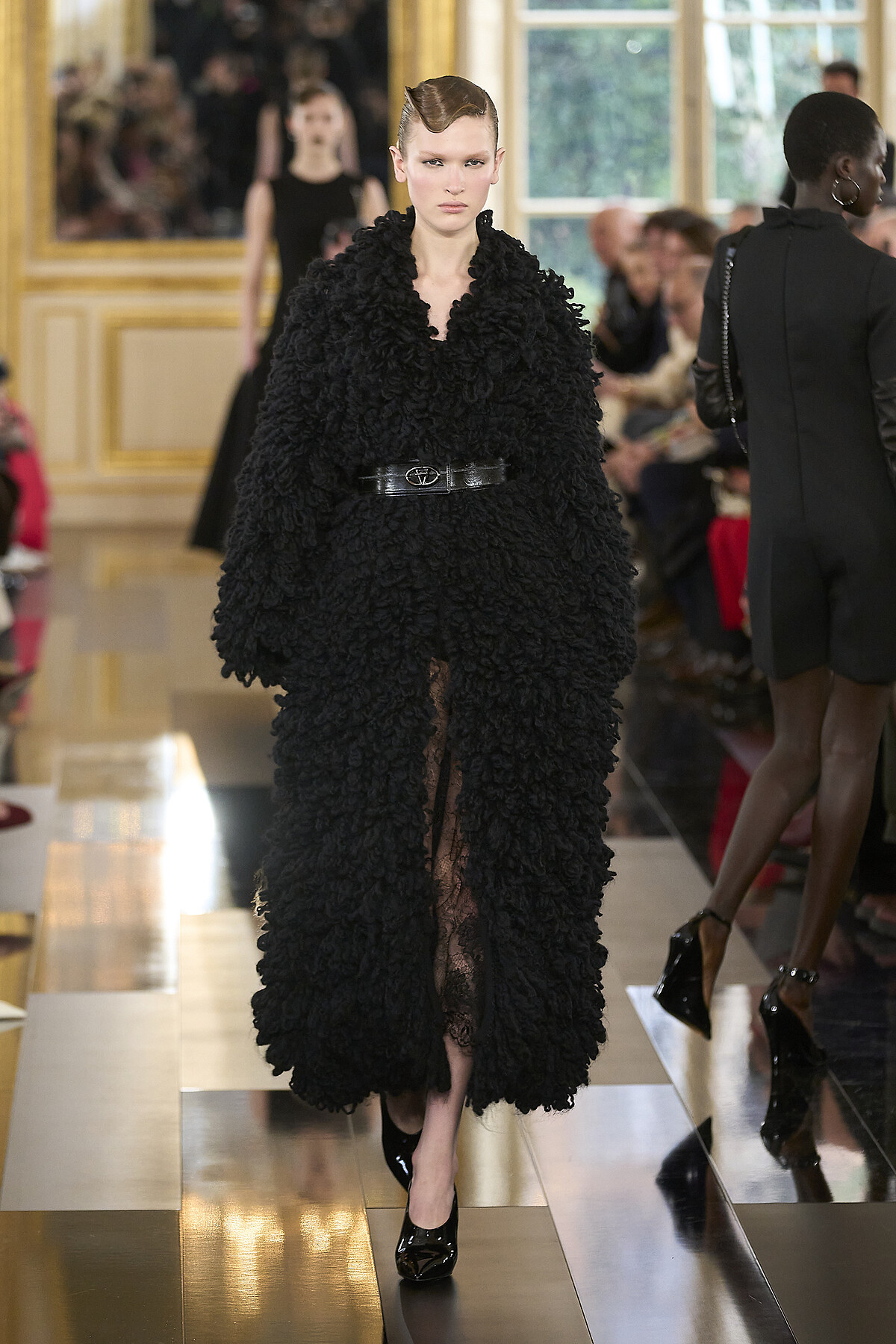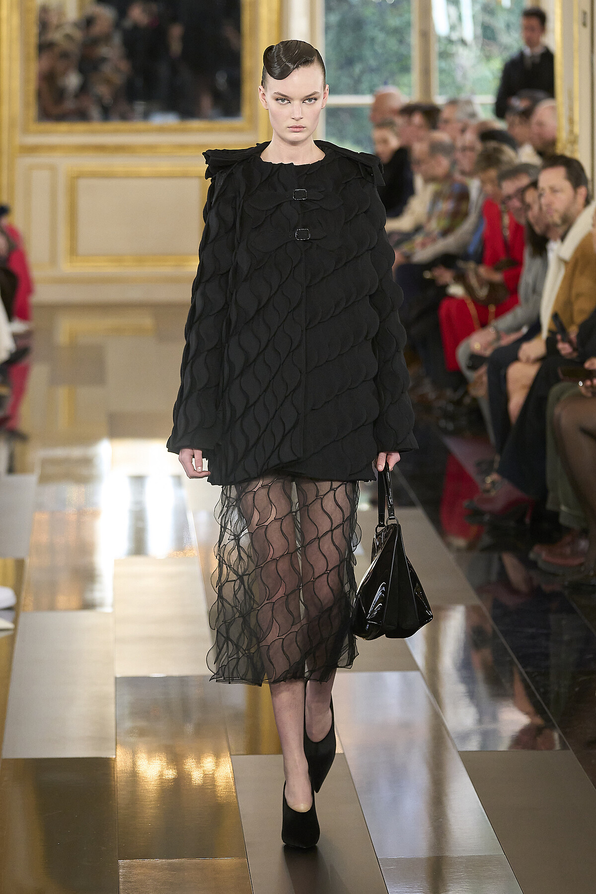 Pierpaolo Piccioli 解析了光譜上的每個角度和紋理,以精確又巧妙的工藝技術,循著紋理、剪裁、刺繡和圖案,呈現布料與輪廓之間的關係,將黑色的視角,聚焦於細節之處,其中,輕薄飄逸的禮服、結構感十足的拉鍊連帽衫、訂製上衣和長褲以及訂製手套,乃至具有光滑紋理的飛行員夾克。甚至包括帶有高領毛衣的彈性薄紗透明雪紡裙裝,到搭配西裝外套的針織迷你連身裙,揉合陽剛與陰柔,從正式到休閒,都得到了完美體現,每件設計都黑的閃閃發亮。現在讓我們一起再次回味這些蘊藏在精美華服裡的細節,以及 Pierpaolo Piccioli 關於時尚的至理名言。