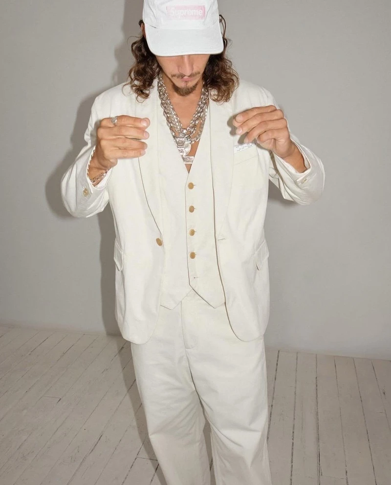 據悉,本次Supreme x MM6 Maison Margiela聯名定價會從28美元到1,398美元左右,最低價可從襪子入手,最貴王者則為本次最獵奇的品項—假髮,不過全部詳細價錢還有待官方釋出。而目前討論度最高的單品則是西裝造型以及錢包,其中以Supreme發票包覆Maison Margiela錢包的設計相當特別吸睛。