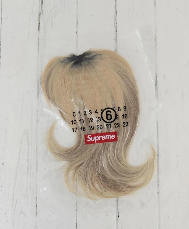 Supreme x MM6 Maison Margiela系列能看見Supreme常見的潮流單品,被注入MM6擅長的解構、前衛作風,像是由3件不同款式拼接而成的棒球外套、「T恤印花」的T恤、雙頭背心、塊狀絨毛大衣……而每回Supreme新品中最令人期待的小物配件,這回也誠意十足的帶來了金毛假髮、鎖鏈鎖頭、滑板、錢包、襪子……等單品,以下就一起來搶先一覽Supreme x MM6 Maison Margiela聯名系列20+單品。