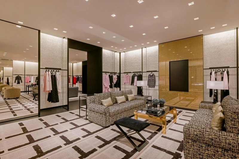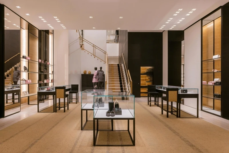 來自紐約的建築師Peter Marino,在過去25年中為Chanel打造了數百件專門店與建案,每件作品設計都能將Chanel偏愛的黑、白、金、米色經典色調與品牌美學完美結合,並同時在設計細節上融入當地的人文風情,在本次台中大遠百的全新店裝上也是如此,室內以康朋街上巴黎總店的外觀為靈感,以橫向的線條呈現,設計上運用柔和的金色金屬、手工拋光的檯面、黑色熔岩門與細緻紋理牆飾,搭配上由Peter Marino精選的一系列現代藝術創作與羊毛地毯及斜紋軟呢家具,將品牌零售空間與藝術相結合。