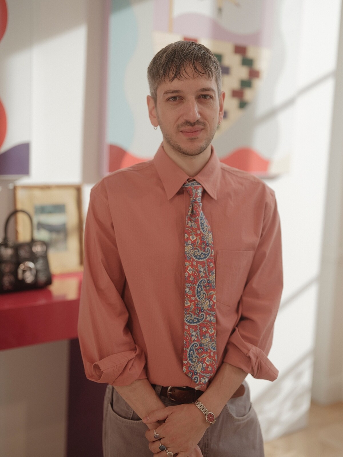 1990年於比利時洛默爾的藝術家Kasper Bosmans,目前在布魯塞爾生活和工作,在藝術領域中Bosmans以層次豐富且不拘一格的藝術創作而為人所熟知,作品涵蓋了雕塑、裝置藝術、繪畫和素描等多種形式,在他的作品中感受到他在創作上不僅生動簡約,也同時融匯了高雅藝術與文學、流行文化、神話和人類學等豐富的故事性元素,更透過酷兒及極簡主義的視角,展現屬於他的全新觀點,這次與Delvaux的合作畫作圖像,也都是由Bosmans親手完成。