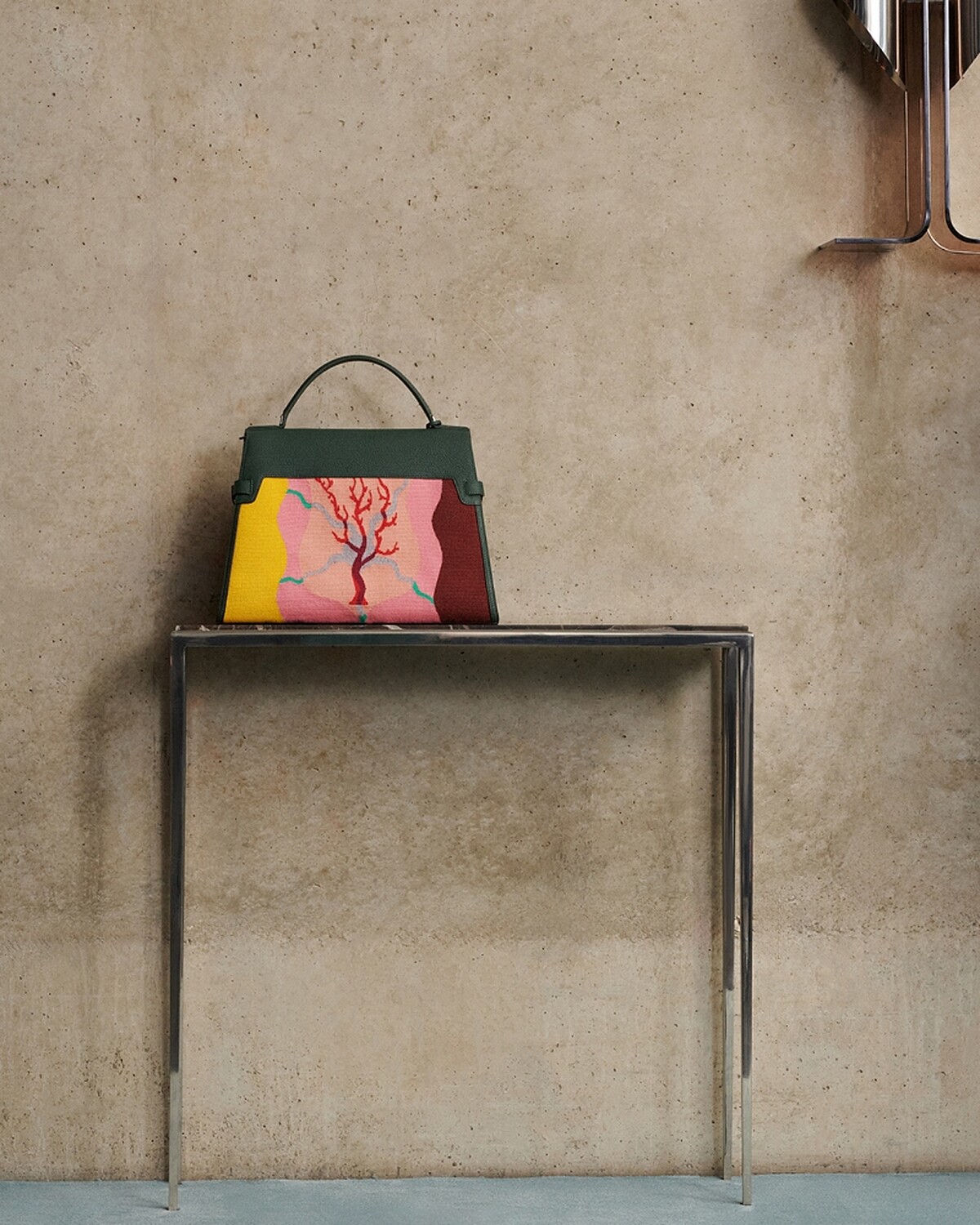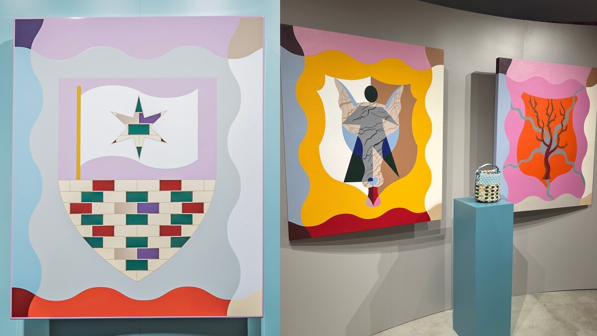此次藝術展除了有包款的展出之外,同場還有三幅由Kasper Bosmans創作的藝術品包括:入口處的《地方英雄》— 由比利時瓷釉工廠生產的搪瓷鋼板,以波浪曲線的拼色紋章象徵地理和政治的關聯,強調意想不到的英雄出現以及古老的圍城觀念。《共生》— 兩幅採用Delvaux皮革製作的皮革鑲嵌畫,捕捉大自然中對比鮮明元素間迷人的和諧關係,其中一幅畫作揭示了人與狼之間的親密感情,另一幅則展示了海星和海藻之間的共生之舞,呈現相互依賴和繁榮共存的微妙平衡。