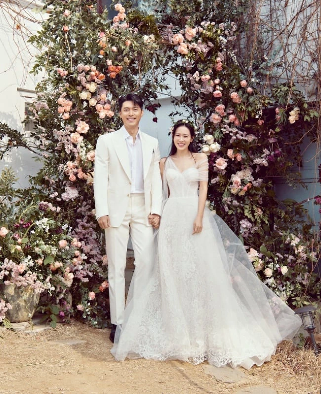 韓國國民級演員玄彬與孫藝珍在2022年4月1日正式攜手踏上紅毯,在經歷懷孕及小孩出生的兩年後,鮮少在個人IG上曝光與老公玄彬合照的孫藝珍突然分享了兩張隱藏版婚紗照慶祝兩週年結婚紀念日,大撒糖的同時也讓身上的婚紗品牌再次受到熱烈討論。