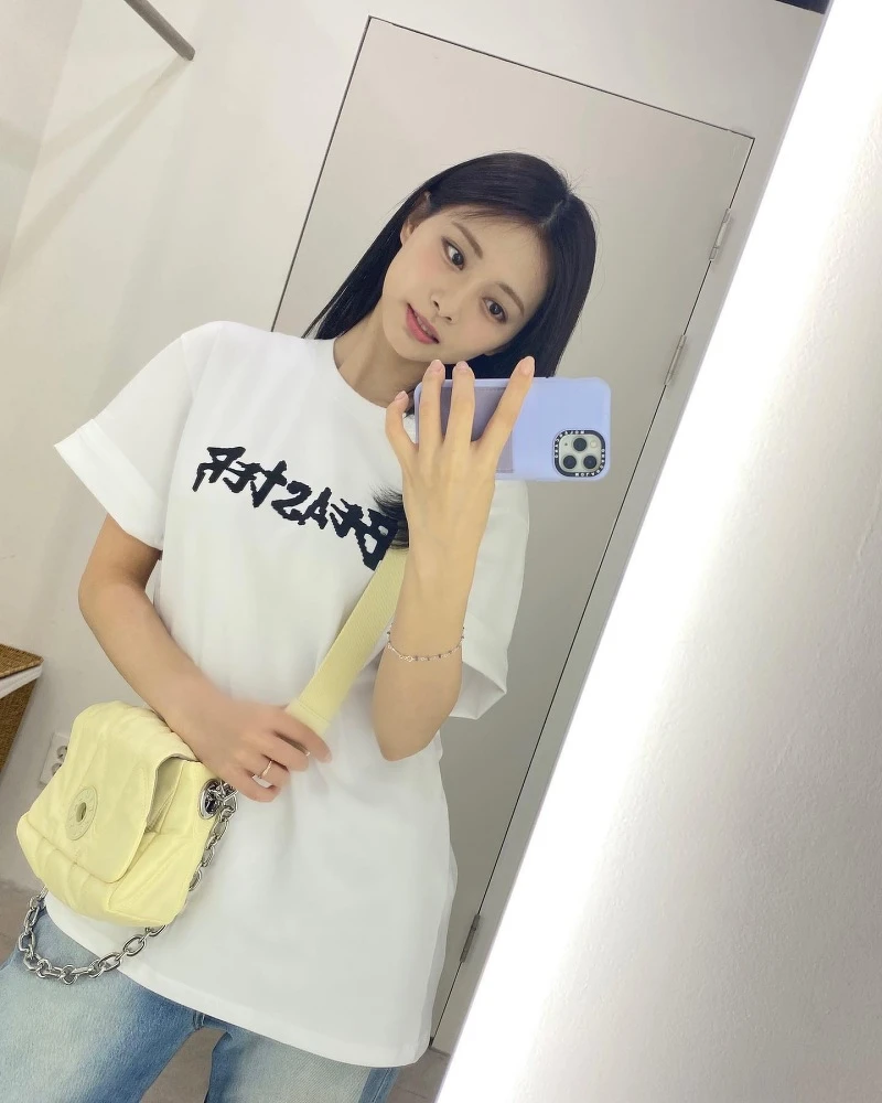 周子瑜穿搭技巧 3:簡約 T 恤 & 牛仔褲、裙