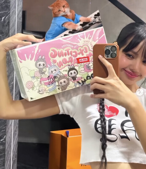 喜愛在社群平台上分享愛用小物的Lisa,近期一連分享了好幾次與一款有著長耳朵、大眼睛與一口小尖牙的公仔相關照片與影片,可以看到有整個系列的大盲盒、包包上的公仔吊飾以及大尺寸的公仔擺件,顯示他對這個系列公仔的喜愛程度之高,而這款公仔正是來自POP MART旗下IP系列中拉布布LABUBU的心動馬卡龍以及春天野在家系列。