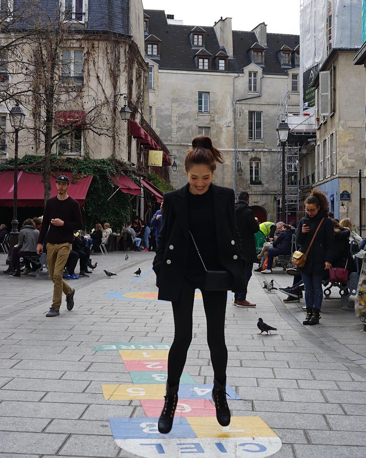無論是稍微正式的場合或是週末日常,許瑋甯都會選擇黑白色系來做搭配,像是黑色毛呢外套,或者是黑白撞色的搭配。利用大面積的黑或白當底色,再在用白或黑色細節或配件當點綴,黑白互相映襯達到平衡是訣竅關鍵。