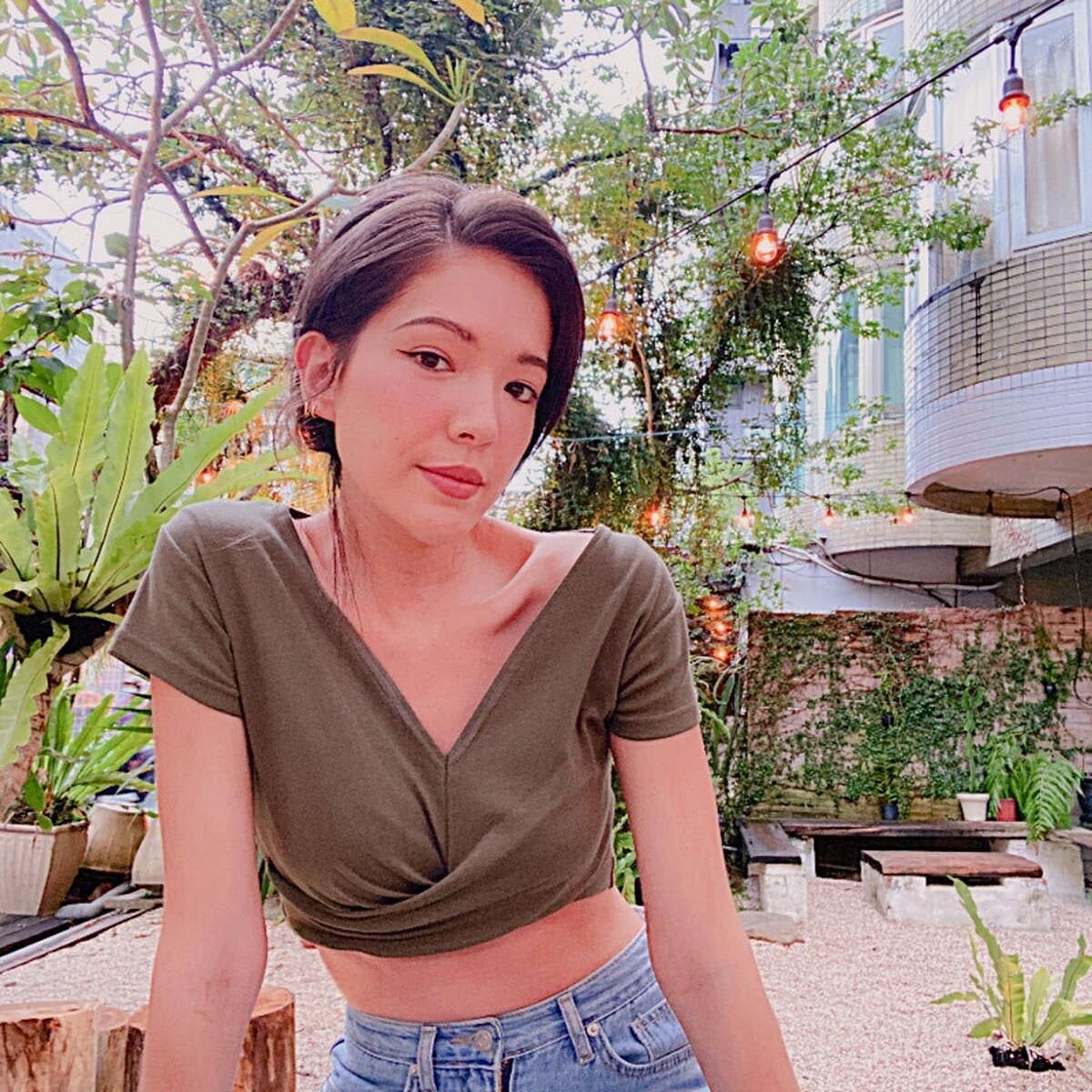 非常有夏季感的短版上衣,簡約俐落,只要簡單的搭配上牛仔褲,就能有時髦感。