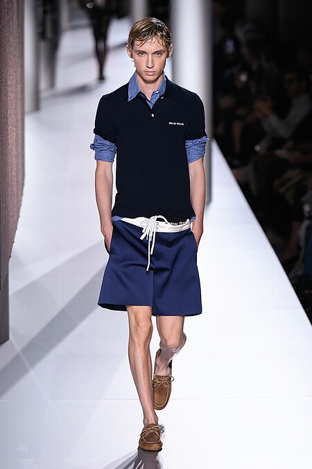 也因此Miu Miu順勢在本季再次拿下最熱門品牌榜首,第二名則是Prada,看來Miuccia Prada的時代將繼續延續。Miu Miu在2008年前曾經設有男裝線,而後專注女裝發展,但是在2022年後Miu Miu再次於時裝秀上加入男性模特來演繹,似乎直指男裝線的回歸,但至今Miu Miu仍然沒有區分男、女裝,而是於每一季的時裝秀上使用更多中性或男性模特來演繹,在設計中加入更多Boyish風格,比如帶有些復古爺爺風的條紋上衣、Polo衫、工裝、教練外套等元素,來與其他極致少女柔美的單品混搭,這些概念皆代表者Miuccia打破性別二元的理想,近年已有越來越多的男生穿上Miu Miu服裝,而男性消費者更在本季度的搜尋量上升88%。