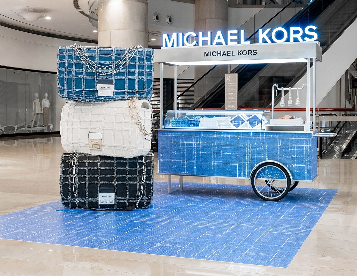 這個春天,Michael Kors為經典包款與熱賣鞋款換上丹寧材質的造型,帶來全新丹寧系列,並為此大動作策劃「美包計畫」,首站於上海登場,與當地知名麵包店BAsDBAN攜手打造丹寧主題的快閃麵包店,在社群上一舉爆紅!第二站Michael Kors以麵包餐車形式來到台灣,找來台北人氣麵包店Miss V Bakery共同合作,每日限量提供時下流行的「蜜糖扁可頌」。