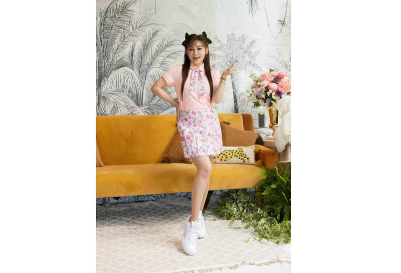美魔女天后王彩樺則以粉嫩繽紛造型來詮釋,以韓國無窮花圖案為主要設計風格的FILA GOLF系列服飾,踩上FILA「 DISRUPTOR II-FLOWER」鞋款,展現出嬌小女生也能靠這雙天菜美鞋穿出修長美腿的可能性,更不用說白系主色調穩住視覺平衡,營造出優雅高級的氣質感休閒裝扮!