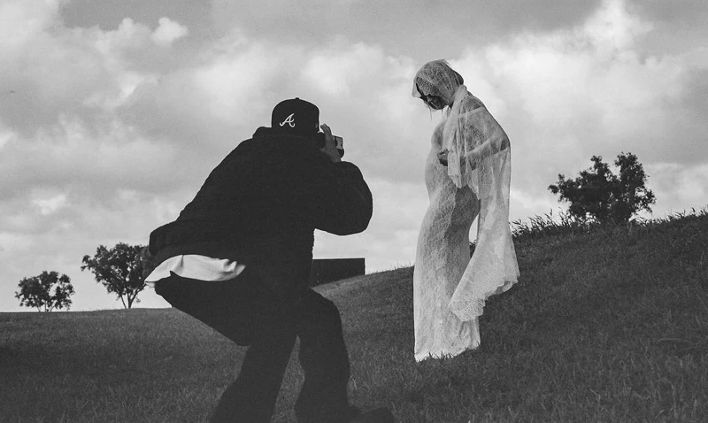 本次海莉親自曬出的孕肚照中可以看到,小賈斯汀穿著一身熱毛絨外套的休閒造型,親自掌鏡照片的拍攝,而海莉身穿的則是由Saint Laurent創意總監Anthony Vaccarello為他特別訂製的白色蕾絲禮服,以及Tiffany & Co.的珠寶系列。