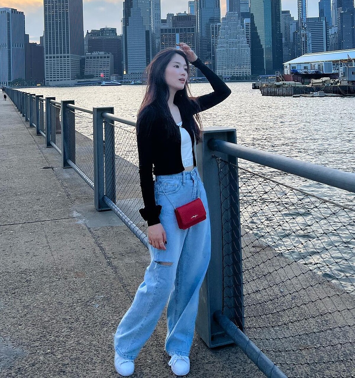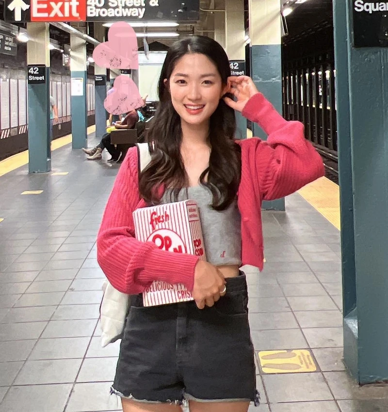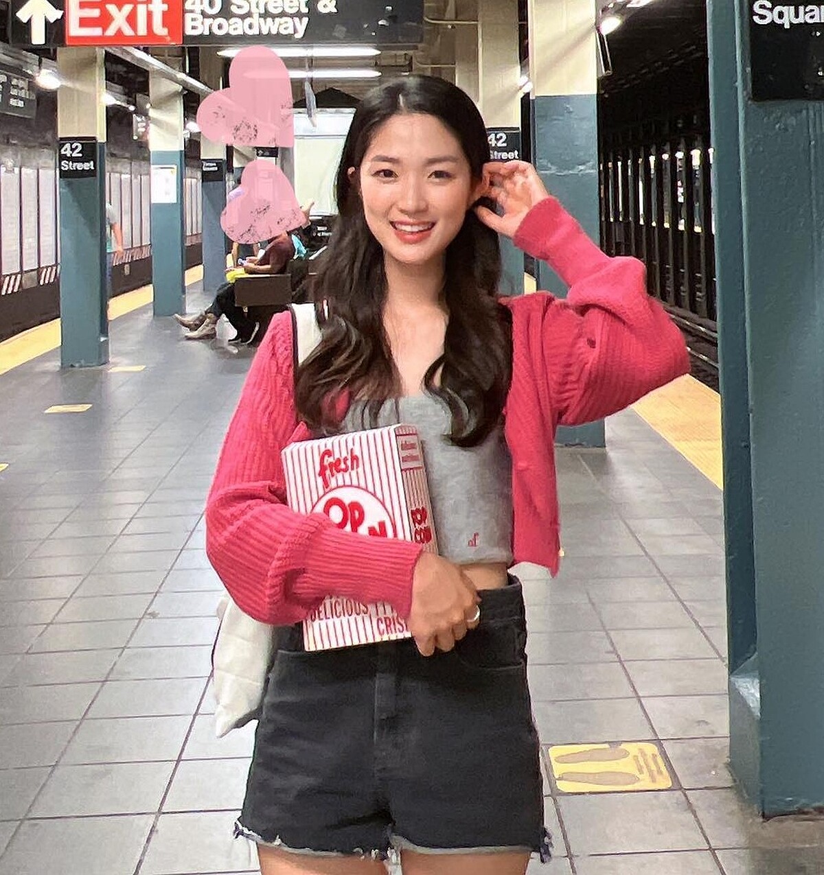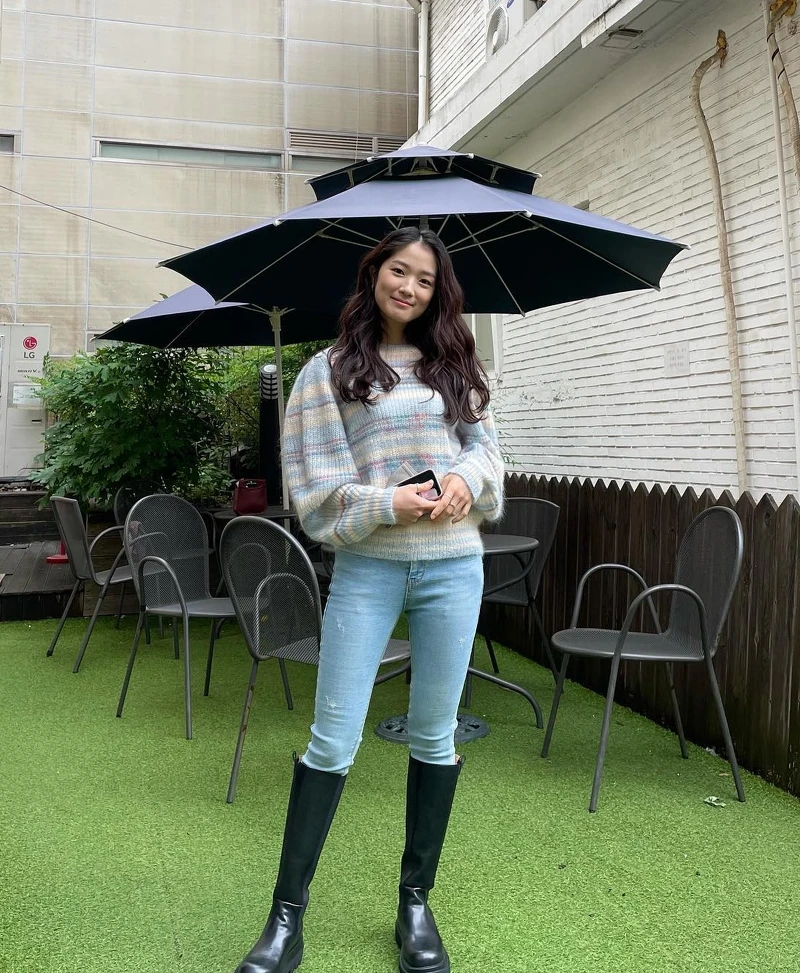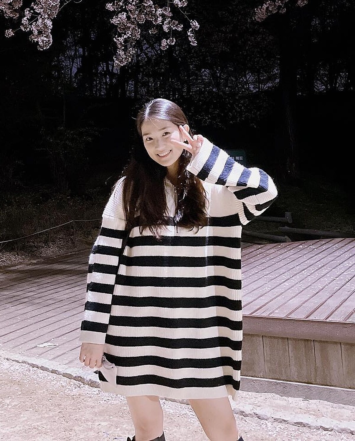金惠奫私底下特別擅長活用橫條紋元素,這也是許多女生非常熟悉的穿搭單品,不管是粉嫩色系還是黑白色系都能看到在金惠奫的私服中出現,有時候金惠奫會在條紋上衣內裡加件襯衫,或者是在外層穿件外套,都能夠很好的增加層次感。