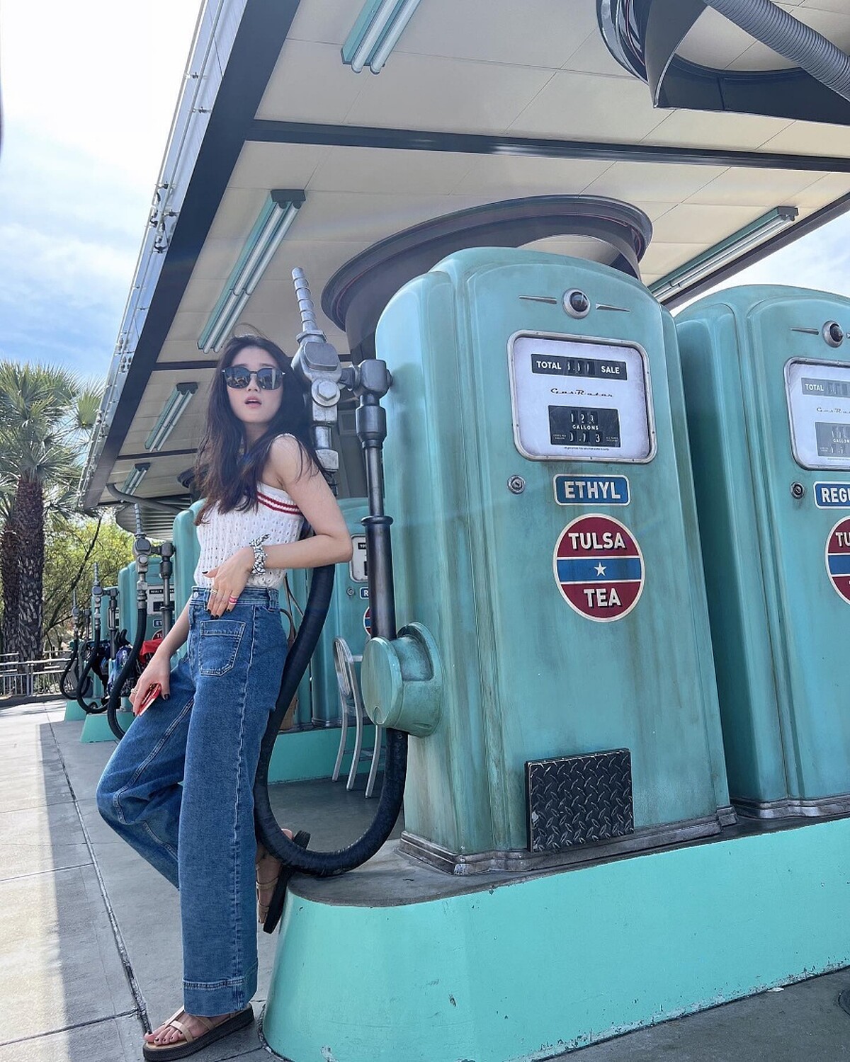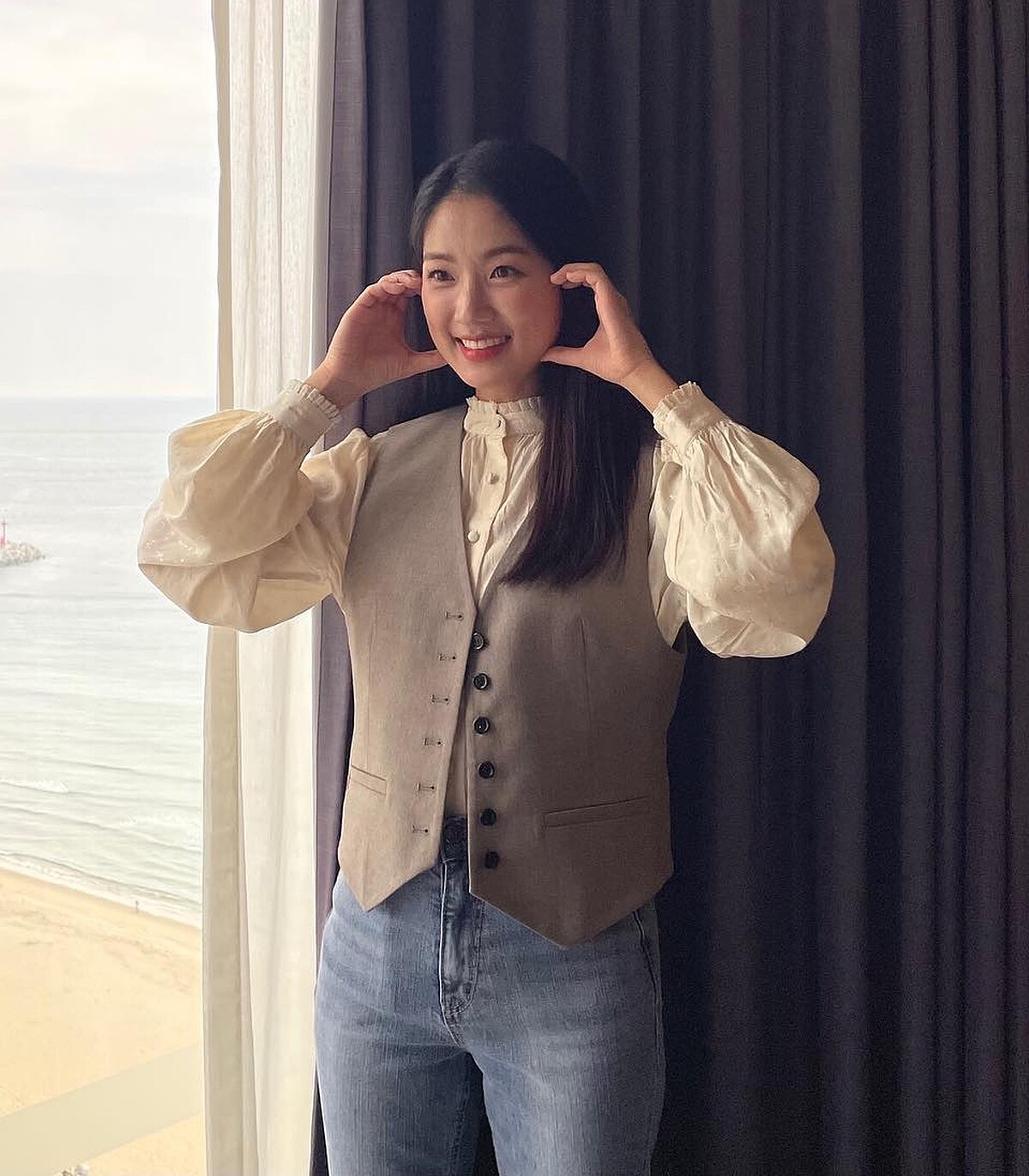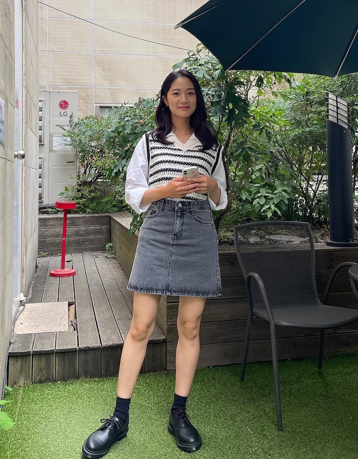 除了以上幾個穿搭重點之外,其實金惠奫在休閒感的風格上也很亮眼,無論是穿有點優雅的毛呢外套,或是基本款的短袖T恤、背心都能自由地在展現不同風貌,只要搭配上短褲或牛仔褲就很適合夏天。
