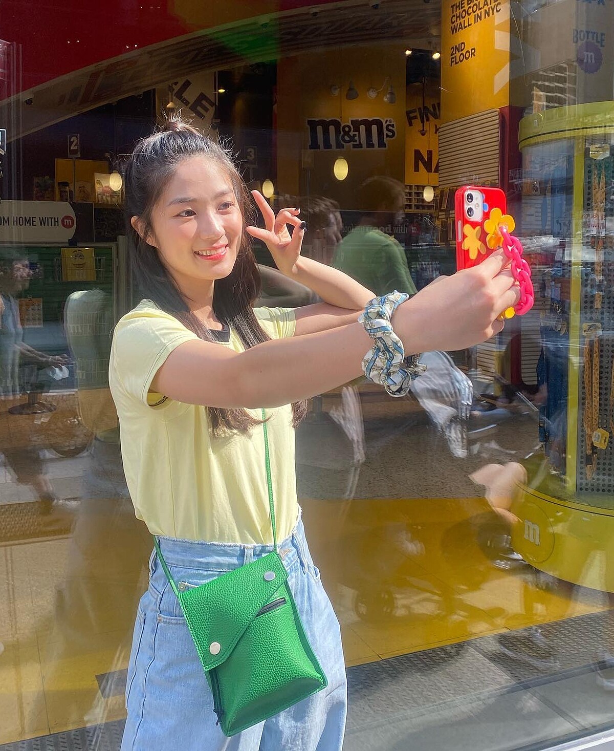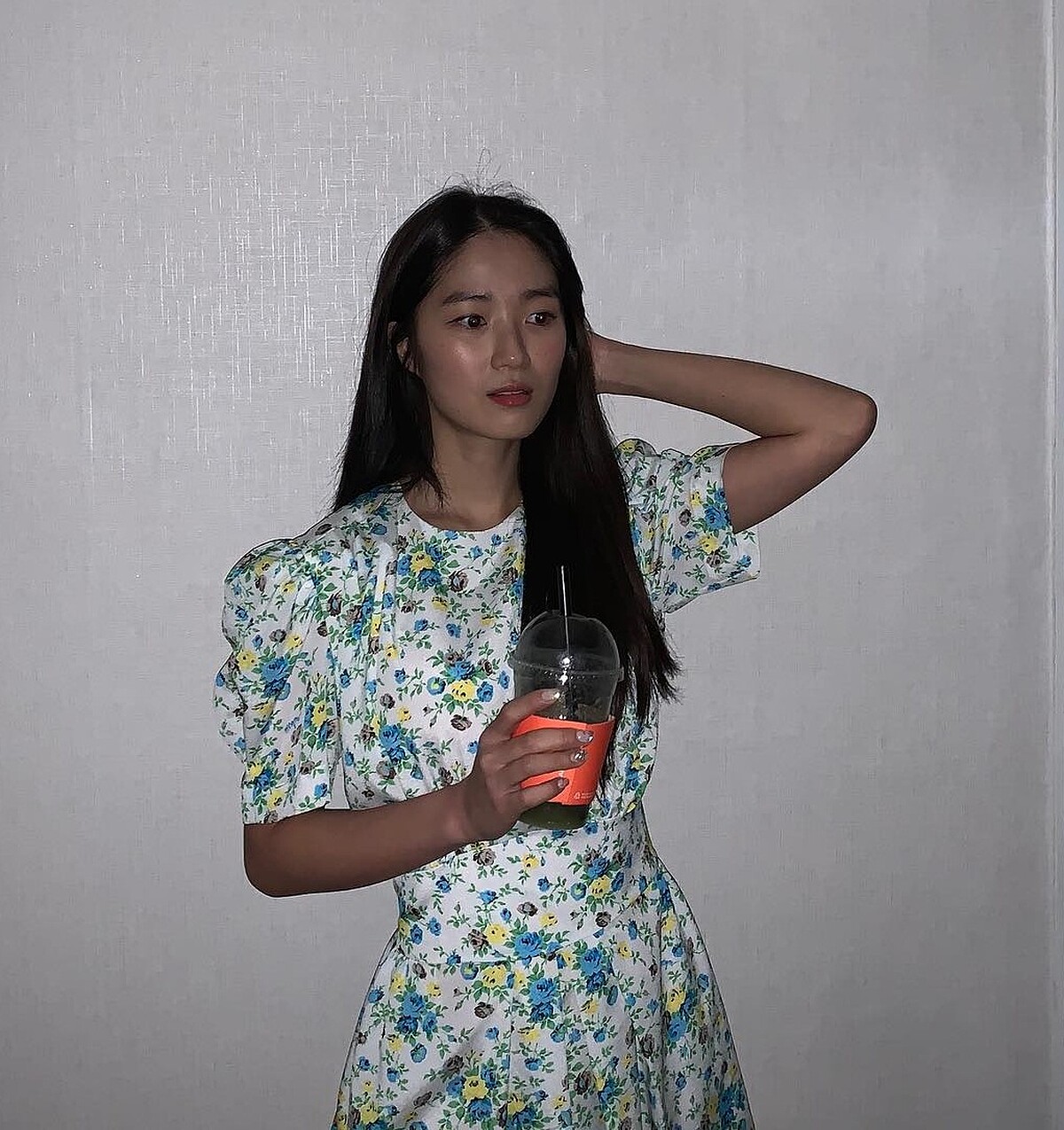 在春夏期間非常受歡迎的碎花洋裝也是金惠奫鍾愛的服裝類型之一,不過在色系的選擇上,都是以粉藍色、深綠等柔和的顏色穿搭,這樣在視覺上就不會太繁複搶眼,反而有柔美的女性氛圍。