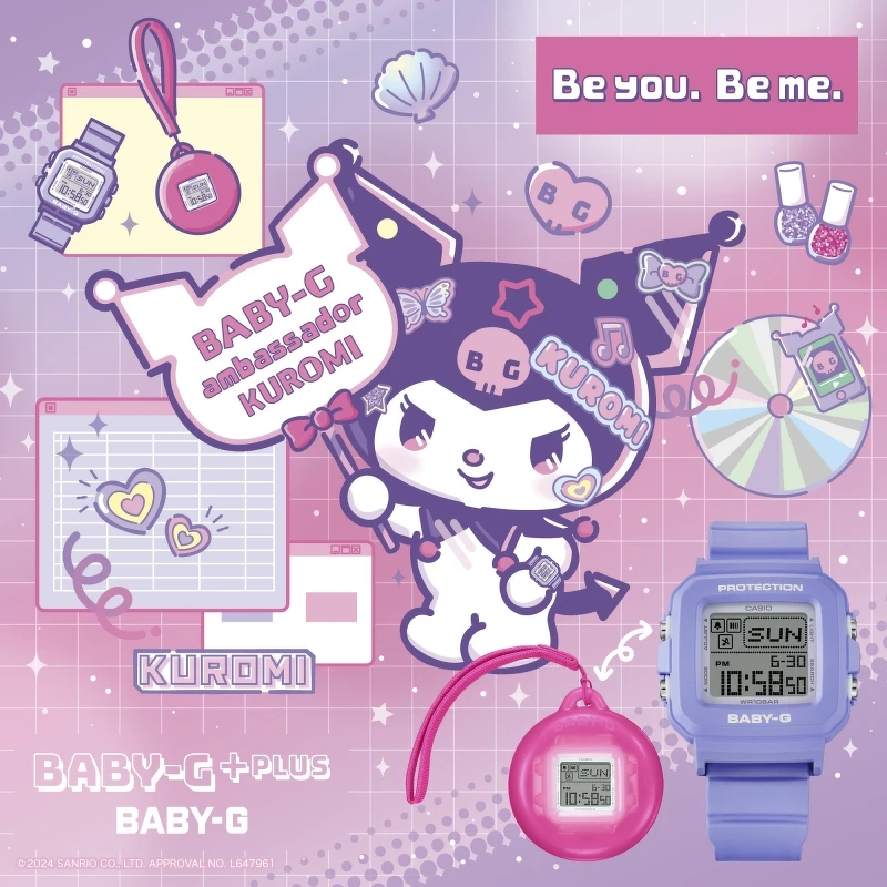 CASIO在近期正式宣佈,酷洛米將會出任BABY-G 30週年品牌大使的好消息,更以酷洛米的角色個性與風格推出#KUROMIFYTHEWORLD特別企劃,搭配標語「Be you. Be me.」,一系列潮流感十足的Y2K形象畫報實在可愛到不行!