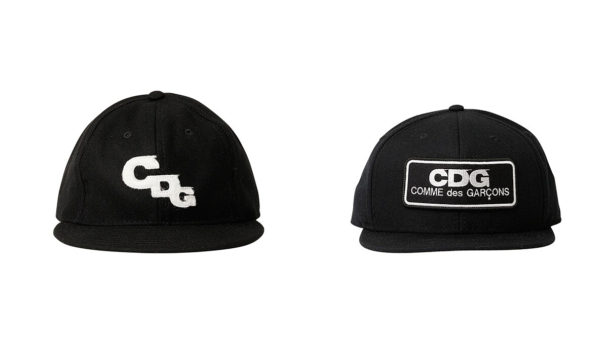 CDGCDGCDG刺繡Logo短檐帽,NT$4,780、刺繡Logo五片帽,NT$2,650