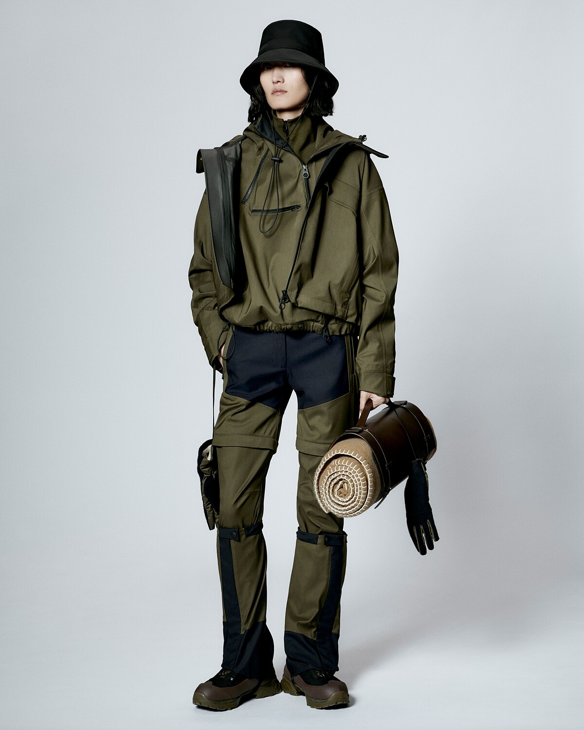 Into The Wild系列包含男女裝與配件,以大地色調覆蓋,絕妙結合了都會與戶外服裝的特質,因此即便是運用在城市生活中的穿搭也不奇怪。飛行員夾克、連帽派克大衣、連帽套頭上衣、防雨斗篷、背心、套頭衫、長褲、緊身褲和短褲,皆在細節中加入許多實用的設計,不只是Bristol ClimaSystem®、Rain System®和Wind StormSystem®等技術面料提供的機能,不同材質拼接、口袋、拉鍊、鈕扣……則是能讓一件單品產生不同的穿著方式,像是一件機能長褲,可以拆解成短褲,也能將褲腳反折扣上,以實用、多功能以及高自由度的疊搭方式貫穿整個系列。