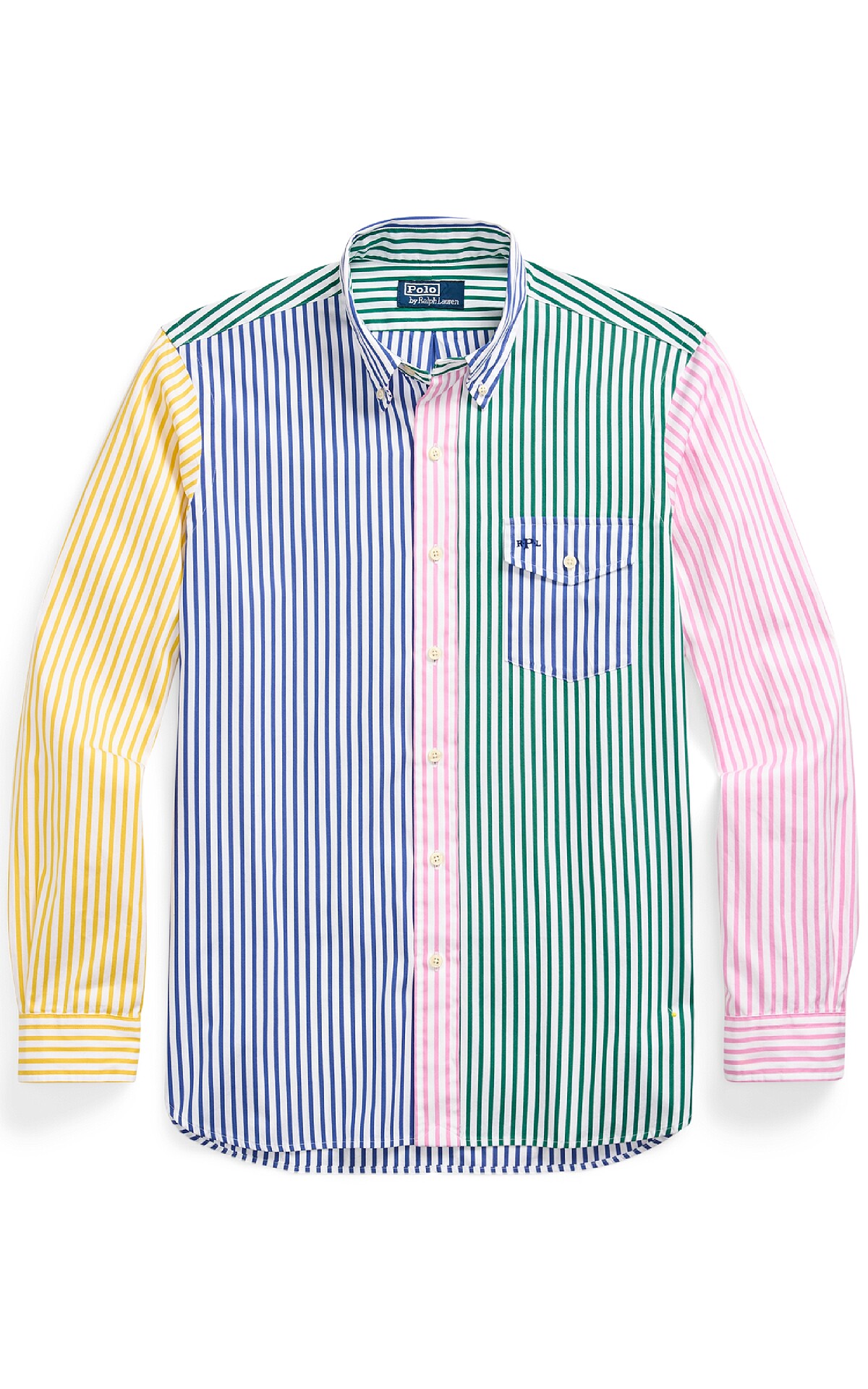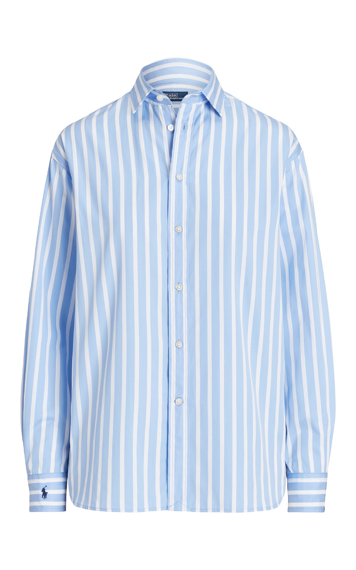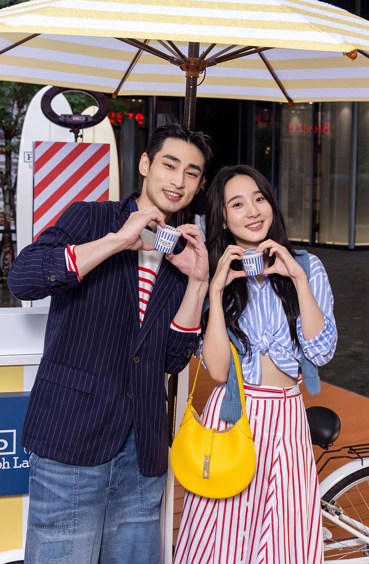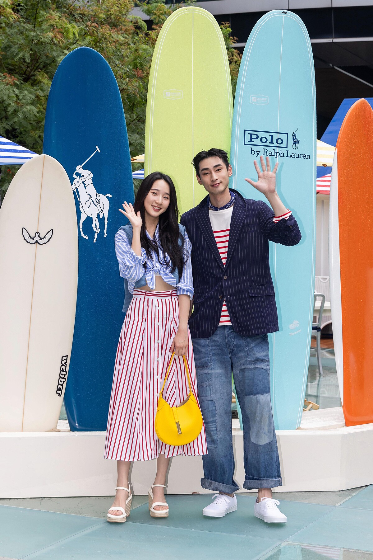 快閃店開幕當天,李沐穿著條紋棉質襯衫帶領我們搶先逛,寬角領及鈕扣式開襟俐落延伸頸部與肩線線條,並以綁結方式打造腰部比例與修飾效果,下身的A字半身裙,透過線條顯得更為俐落大方;章廣辰走的則是內斂路線,身穿Polo Ralph Lauren 經典條紋船型領上衣,外罩直線西裝外套,寬鬆版型仿舊牛仔褲凸顯率性愜意的氛圍。