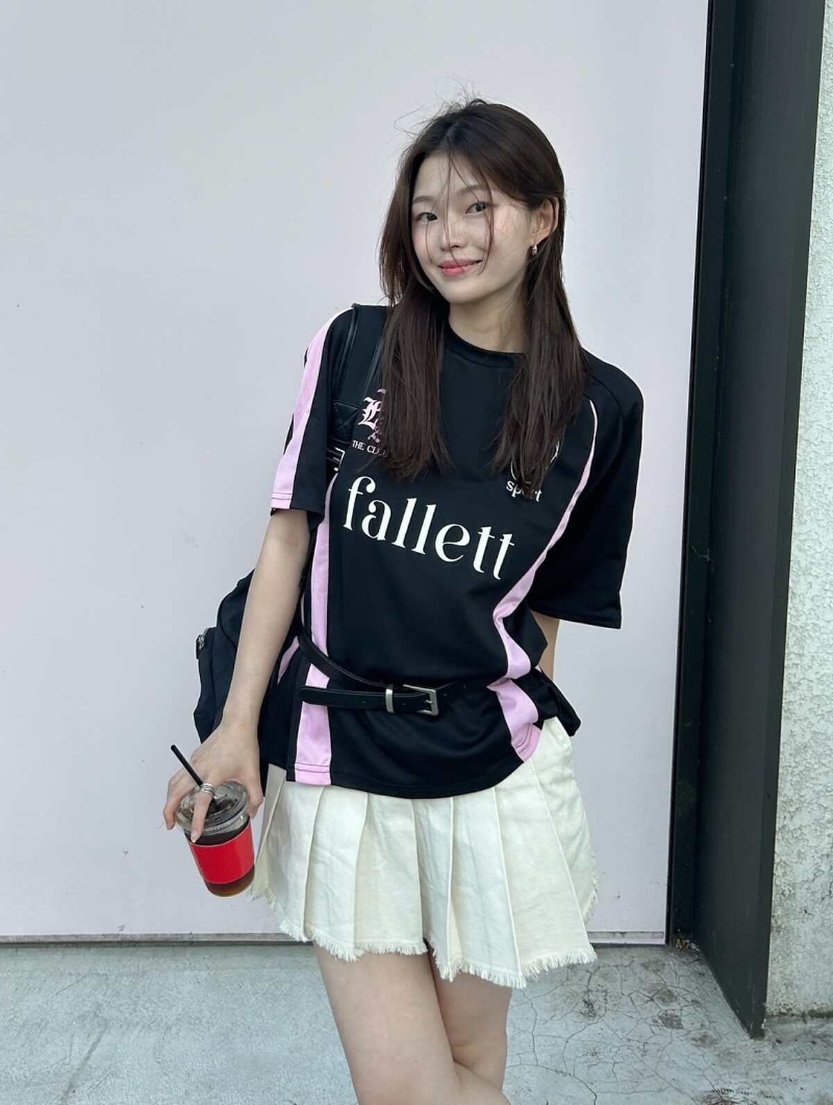 Fallett的服裝單品以甜美休閒的風格為主,其中最熱買的就屬這件黑色+粉色的球衣,無論是寬鬆的Oversized或是小尺寸的合身款,都非常好搭,印花圖案也更加適合日常穿著!