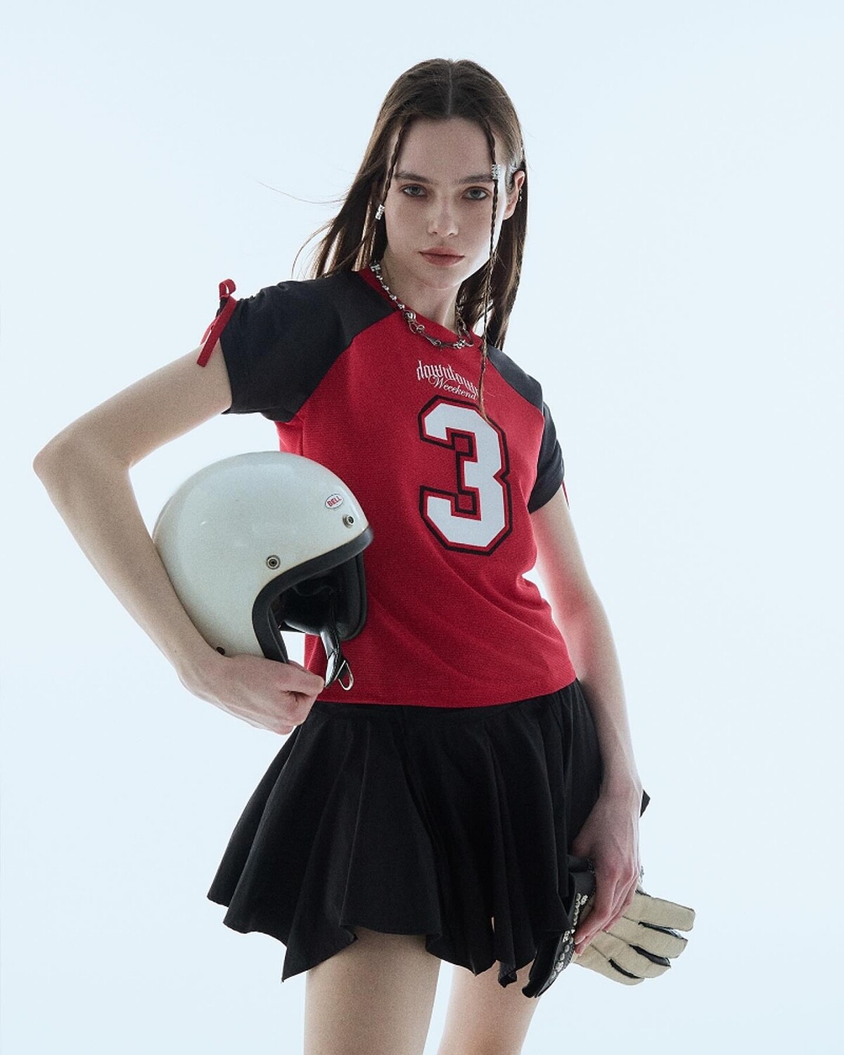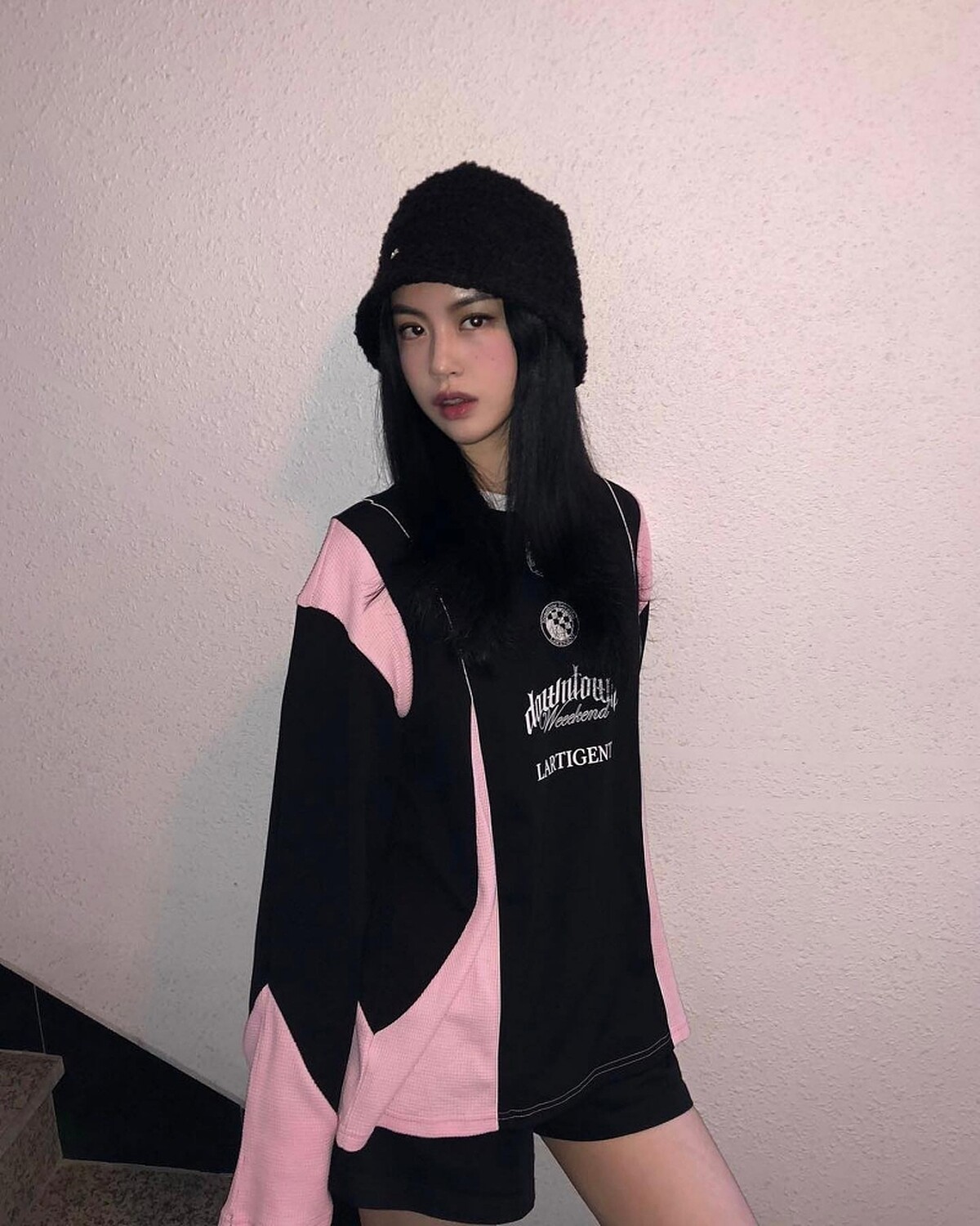 以美式Y2K甜辣風格為主的設計師品牌asif-calie,近期的出境率非常高,因為品牌推出的球衣被大勢女團Newjeans成員Minji穿上身,也掀起一陣同款搶購熱潮,除了Minji的白色款之外,還有黑色可以選擇。