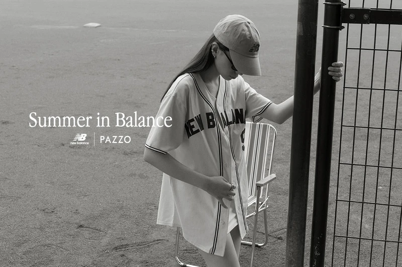 由Jennie、Bella Hadid等名人及時尚博主們帶起的Blokecore style,運用各式球衣混搭日常單品的造型是今季熱門的風格之一,本回Pazzo便以此概念為主題與New Balance推出聯名系列,透過「Summer in Balance」的視覺主題,展現女孩感元素與運動休閒穿搭間的甜美平衡,系列包擃包含復刻棒球上衣、拉鏈連帽外套、短TEE及中筒襪。