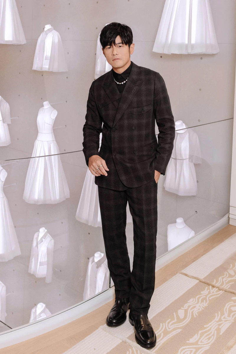 Dior Diamond Towers開幕活動當天晚間,不只有金智媛的現身令人期待,另一位超大咖嘉賓,正是去年底接下Dior全球代言人頭銜的周杰倫!這是他首次以代言人身份出席品牌活動,他先是以全身Dior x Stone Island的聯名系列接受專訪,接著在晚間活動時換上另一套雙排扣羊毛套裝,透過珍珠頸鍊巧妙製造視覺亮點。