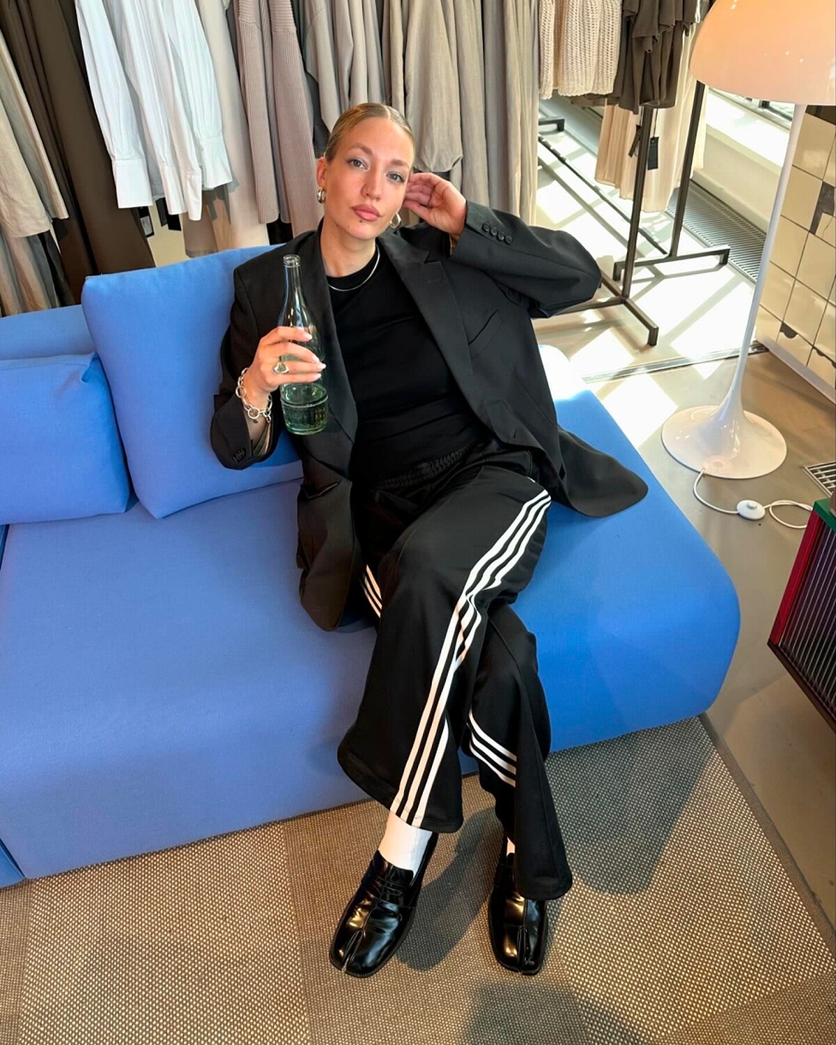 在包容度非常高的混搭趨勢之下,各種不同風格,甚至帶點衝突感的交錯搭配美學,讓三線運動褲的穿搭更加多元:
