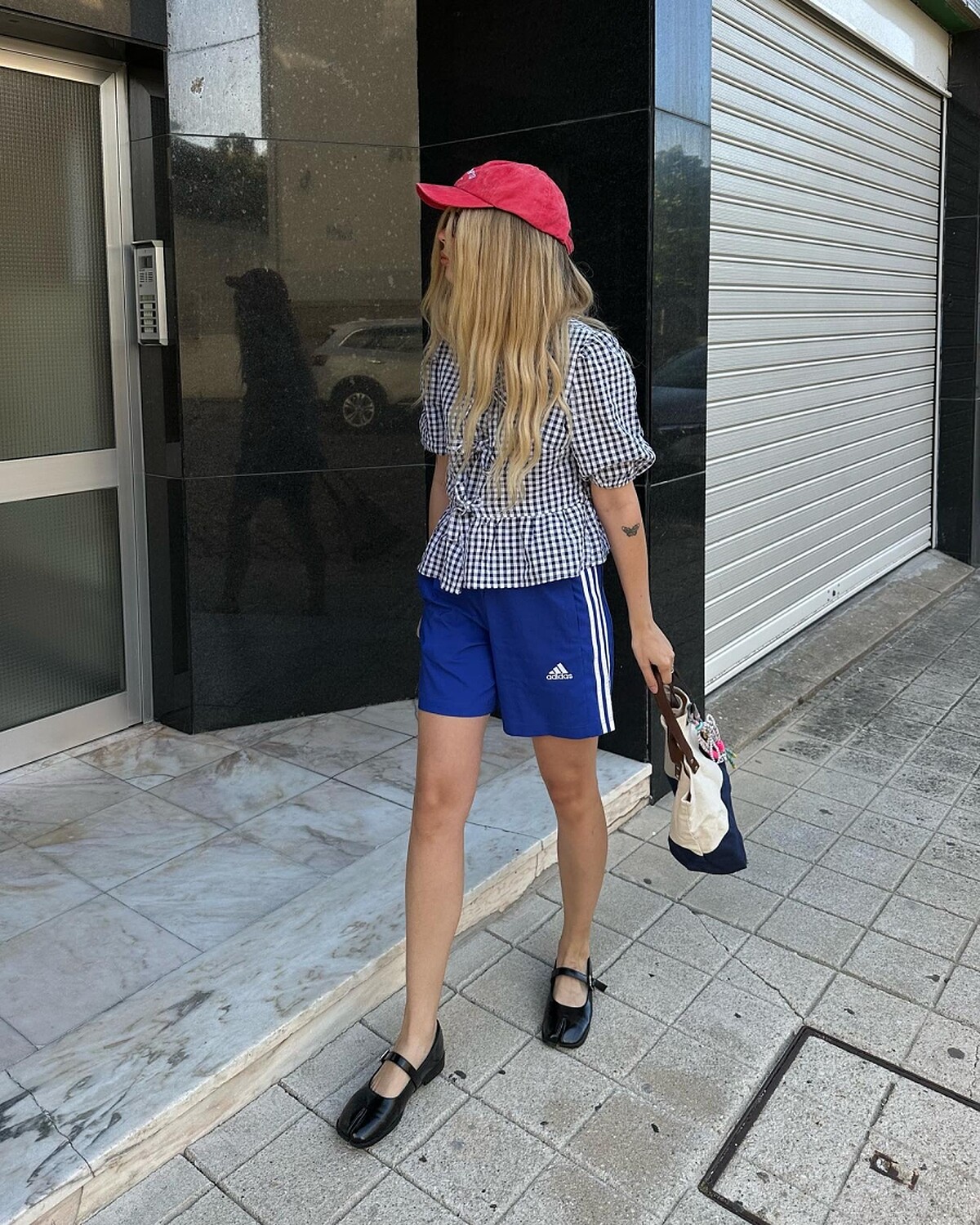 Blokette的穿搭風格沒有制式規定,運動短褲上身運用少女感的澎袖上衣搭配,戴頂亮色棒球帽,精緻感立刻出現。