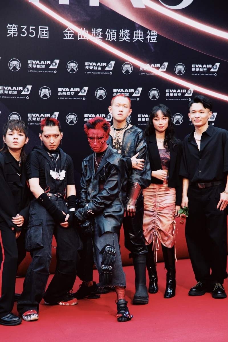 入圍【最佳演唱組合獎】的尋人啟事成員錢沛筠DoDo、錢姵文Rere、呂佳諭(掐玉)、陳信迪、孫晨銘(阿諾)