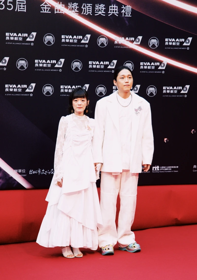入圍【演奏類最佳專輯獎】、【演奏類最佳專輯製作人獎】的Dongyi東熙與太太易以柔以白色為主色調合體在紅毯上亮相!