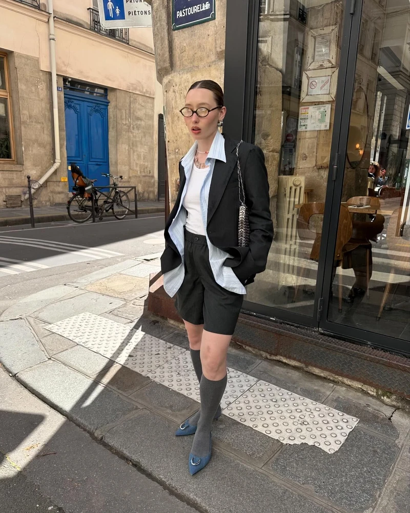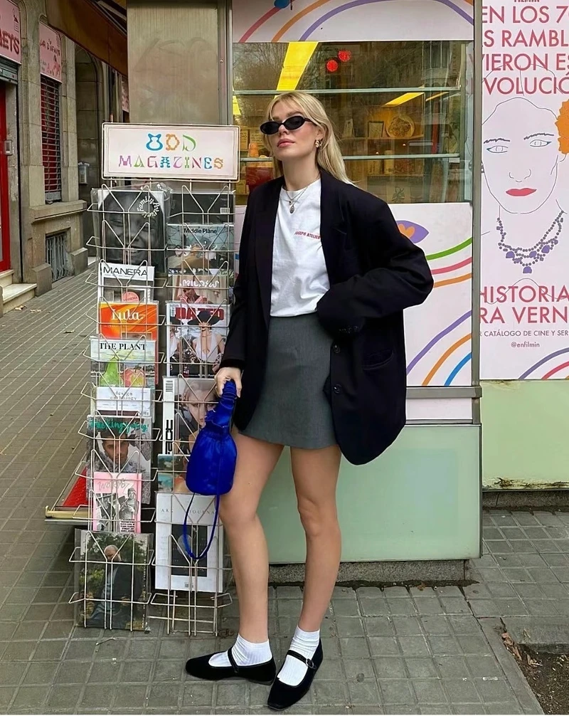 西裝外套現在幾乎是衣櫥裡必備的百搭單品之一,不僅僅是正式場合的首選,也是日常穿搭中的亮點。在Librarian Core風格中,一件西裝外套,搭配上俏皮的迷你短裙,就可以輕鬆打造出一種有質感時髦又不失優雅的書呆子形象!