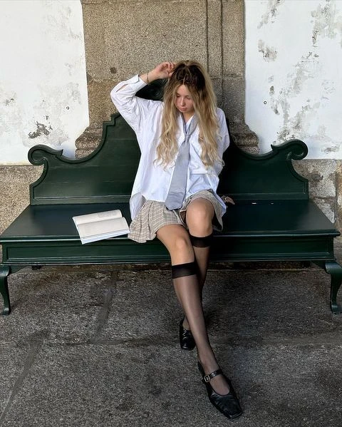 如果說眼鏡是Librarian Core風的必備單品,那瑪莉珍鞋也可以說是時髦書呆子風的精髓,一雙白襪搭配上瑪莉珍,展現隨性自信的態度,將時髦感拉到最高點。