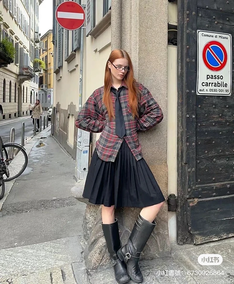 由超模Kendall Jenner帶起的Midi-skirt中長裙風潮,也是書呆子風很重要的單品之一。這種及膝中長裙比起一般短裙看起來更知性幹練,也可以試試格紋和灰色素面等元素,更能跟上現在的復古風潮!