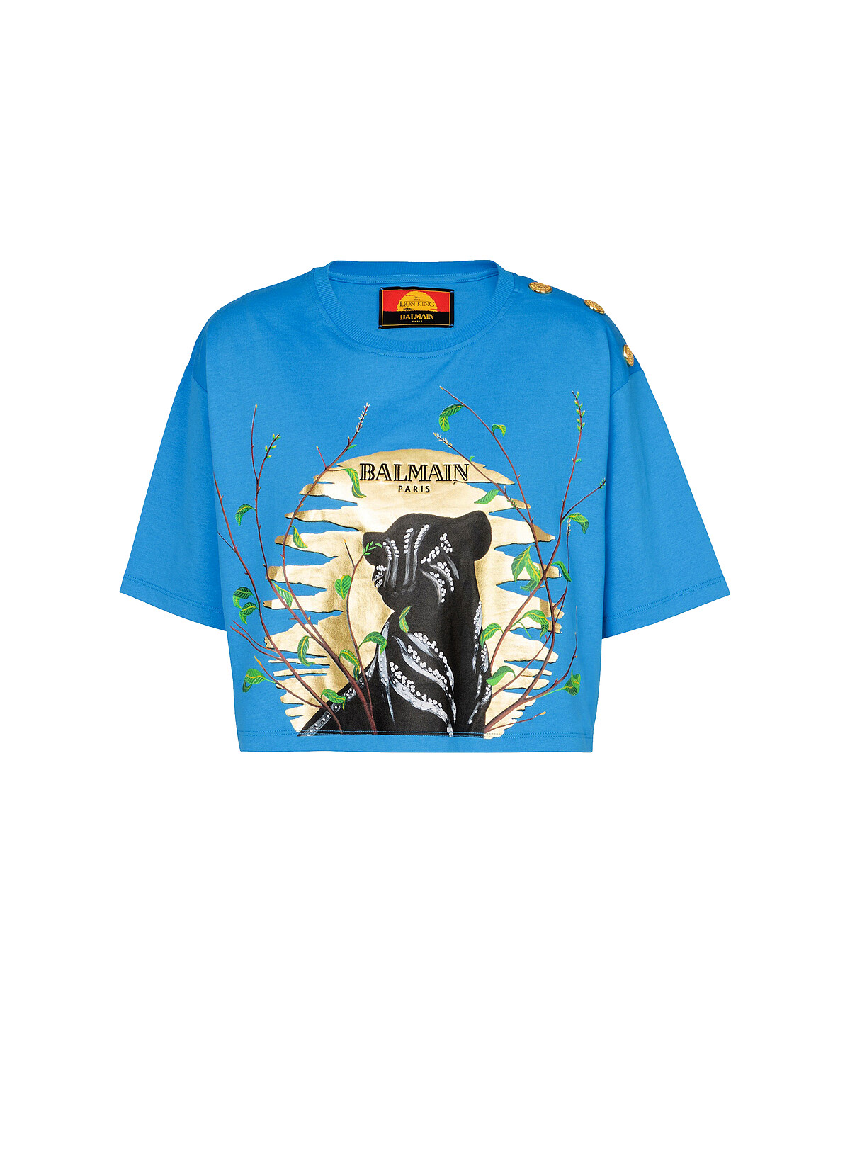 Balmain獅子王系列辛巴頭像印花短版T恤