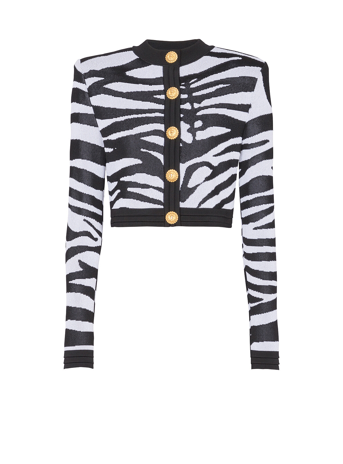 Balmain獅子王系列金釦黑白斑馬紋針織短版開衫
