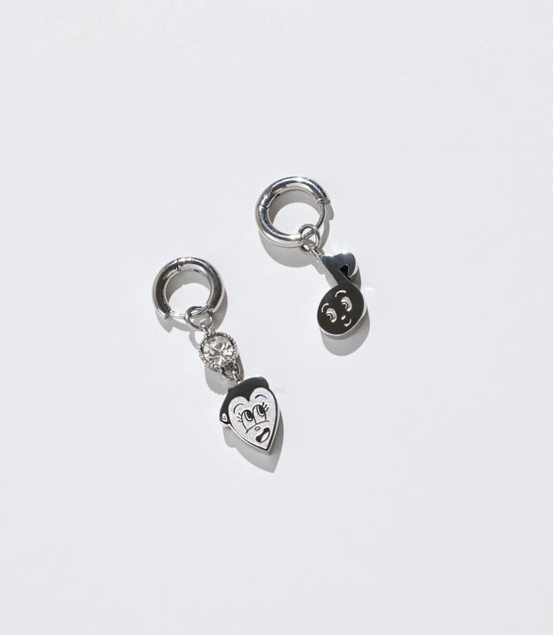 經典角色愛Don_t touch君搭配音符的不對稱設計垂墜耳環,具有聯名代表性。