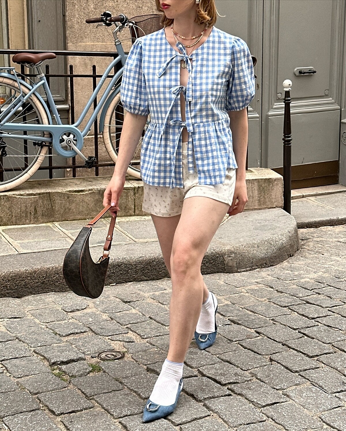 比起高跟鞋有著更多輕盈、休閒感的貓跟鞋,也是今年夏季值得注意的鞋款之一,不僅是因為越來越趨向無規則的穿搭中,優雅、運動風穿搭都能穿上,也很適合打造衝突感的造型,也能透過搭配襪子讓貓跟鞋看來沒那麼強勢!