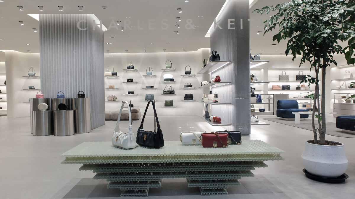 走進環保創意工作坊,舉凡從店內的裝潢到燈具、陳列架等,都呼應著核心的永續概念,今年地球日開始,全台灣的門市只要自備購物袋都能折抵十元,此舉預計每年可以減少5%-10%的紙袋用量。而與塑膠銀行合作的「影響力企劃」,只要在 CHARLES & KEITH 官網上成功交易,就能阻止五個塑膠瓶流入海洋,此項企畫至今已回收超過一千萬個塑膠瓶,對於環境保護而言相當可觀。