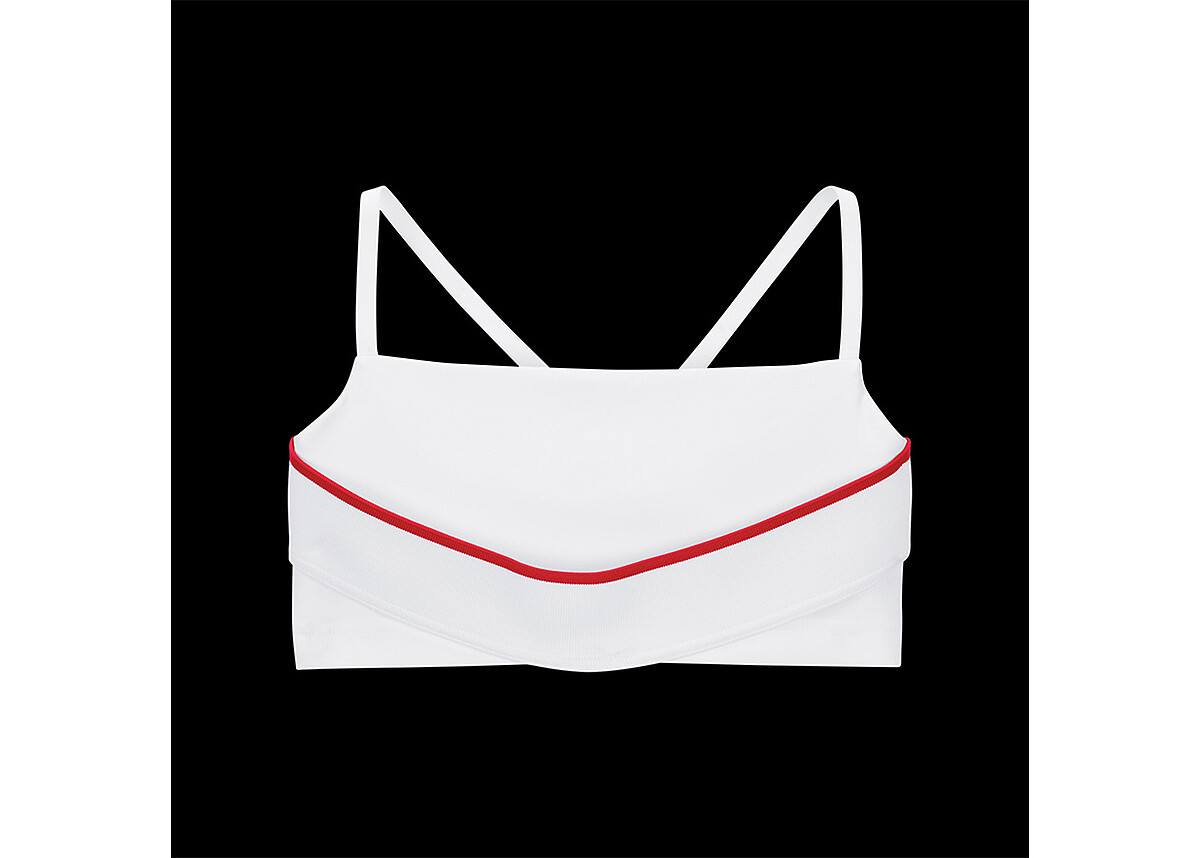 本次聯名系列的服裝以運動服為主,每一款幾乎都有推出紅白配色、藍白配色,短版外套上再次出現Jacquemus的不對稱造型,美背的綁帶元素亦是個招牌亮點,濃厚的法式美學與即將到來的巴黎奧運特別契合,趁著這個時候入手,可以當作奧運期間的時髦穿搭!